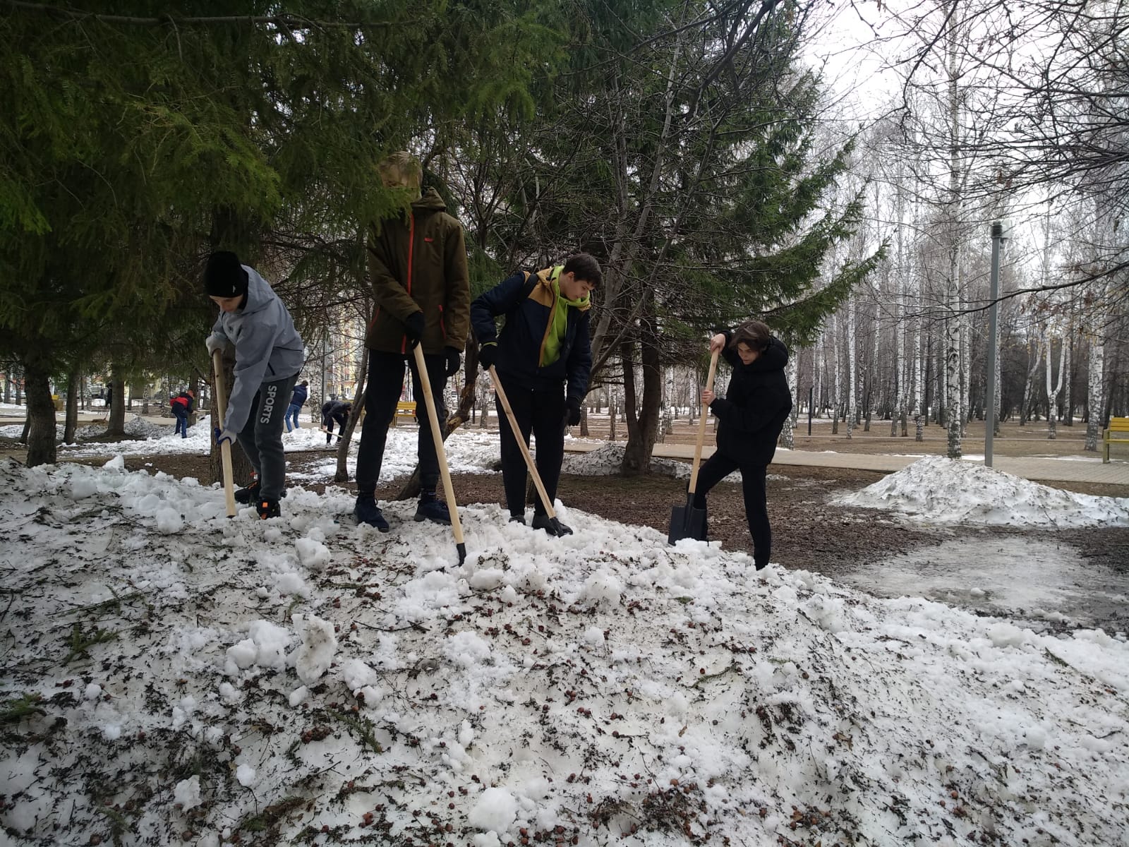 ТОСы Комсомольского района в количестве 20 человек произвели очистку от мусора территорию вокруг  Сидоровского моста, вдоль железной дороги, в районе Закамья. Собрали 20 мешков мусора. Также работы по уборке мусора и рыхлению снега производились в парке «Сидоровский» студентами Камского строительного колледжа имени Е.Н.Батенчука. На бульваре Тинчурина работали 15 учеников школы №1, выполнена уборка всей территории бульвара от мусора. Кроме того велись работы по очистке территории на сквере «Тридевятое царство» учащимися школы №21 пос.Зяб в 15-ом комплексе.