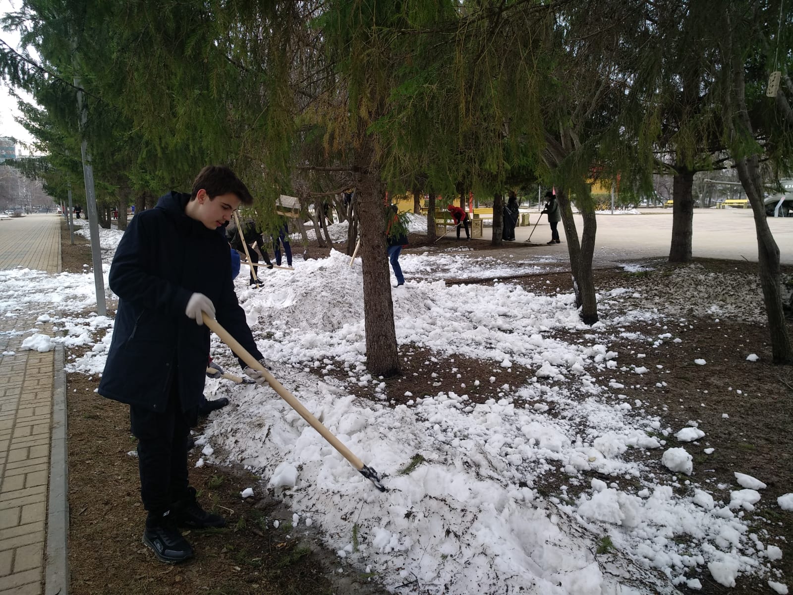 На территории Автозаводского района учащиеся школы №32 в количестве 35 человек очистили мемориальную зону парка Победы. Выполнено рыхление снега, прочесывание газонов, сбор мусора.