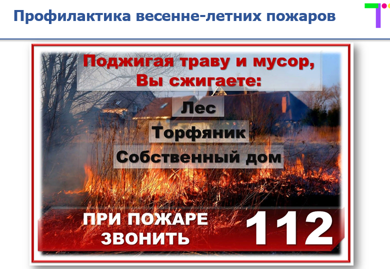 «Нередко это приводит к тяжелым последствиям. Огонь перекидывается на лесные массивы, хозяйственные постройки, жилые и нежилые строения. Вспыхнувшая как порох трава порывом ветра в доли секунды заносится на деревянную постройку, и она тут же загорается», - сказал он.