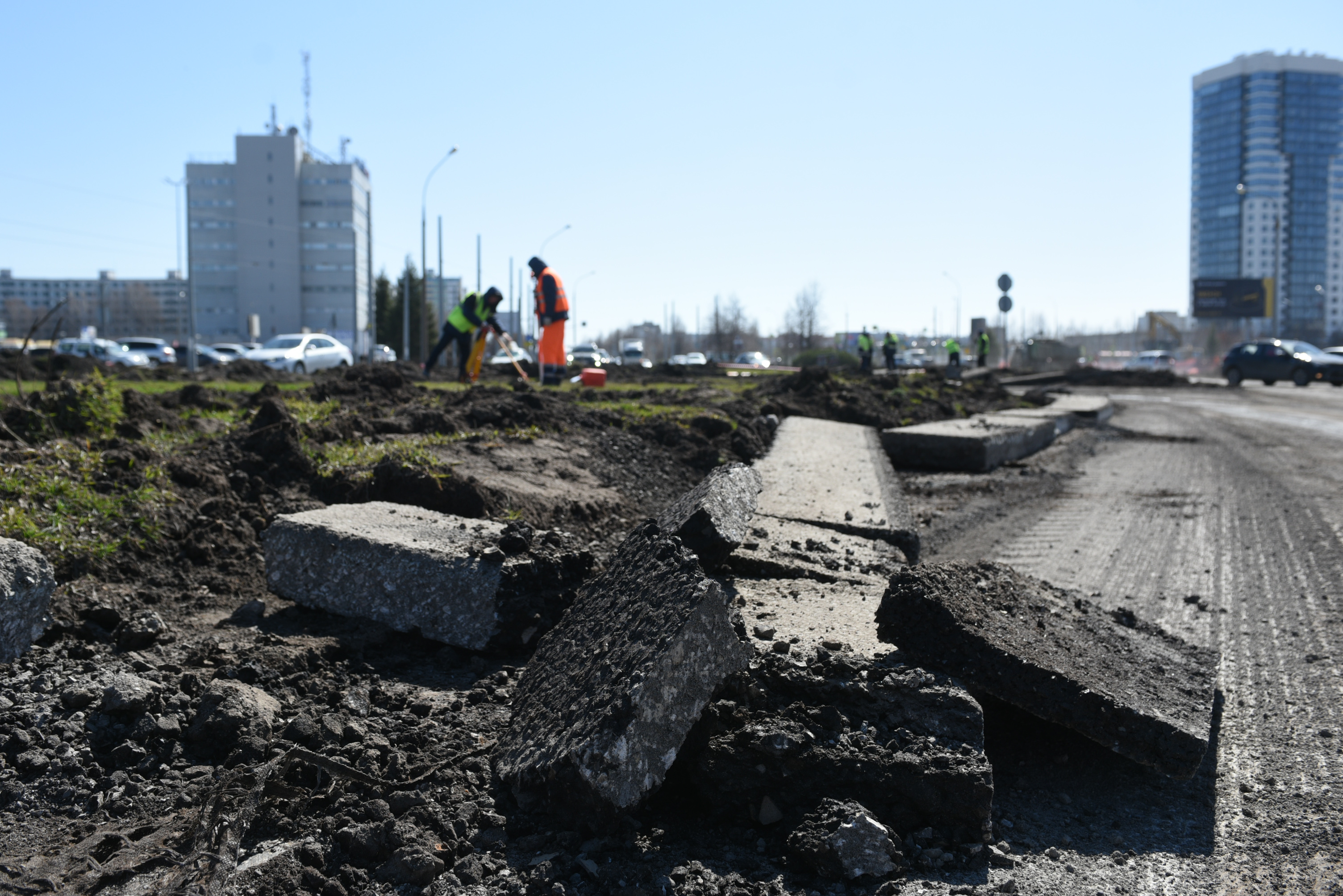 Сейчас техника МУП ПАД работает на проспекте Дружбы народов. Ведутся работы по фрезерованию асфальтового покрытия, демонтажу бортовых камней. Вместо перекрестка, который есть сейчас, будет кольцевой проезд, с разворотом, чтобы с проспекта можно было повернуть, не нагружая кольцо. Появятся три полосы по 3,5 метра, разделительная полоса, новые тротуары и три современных остановочных павильона.