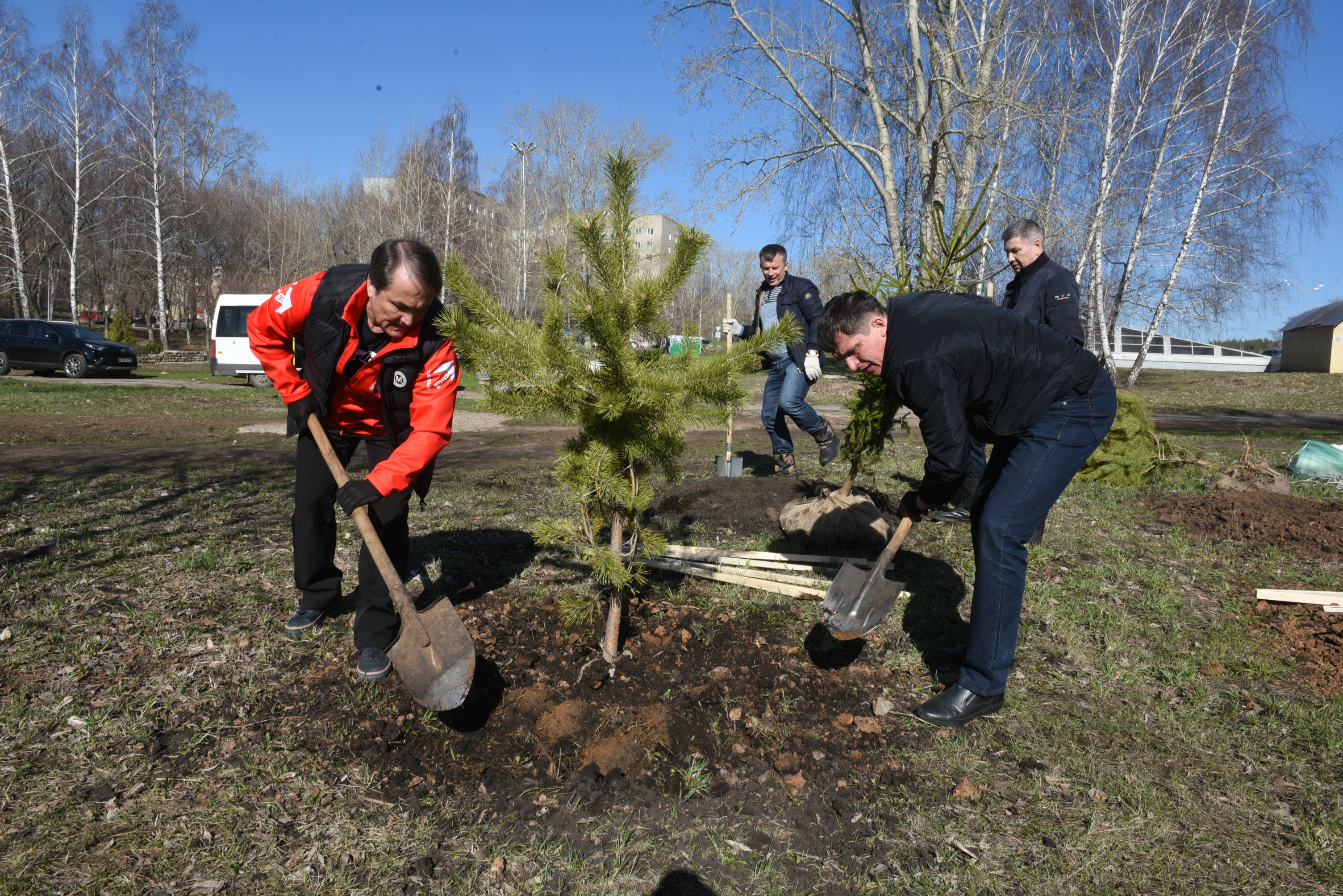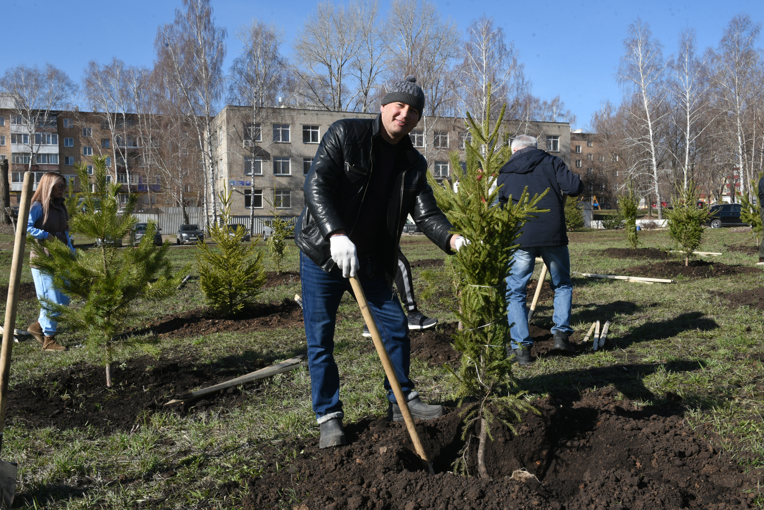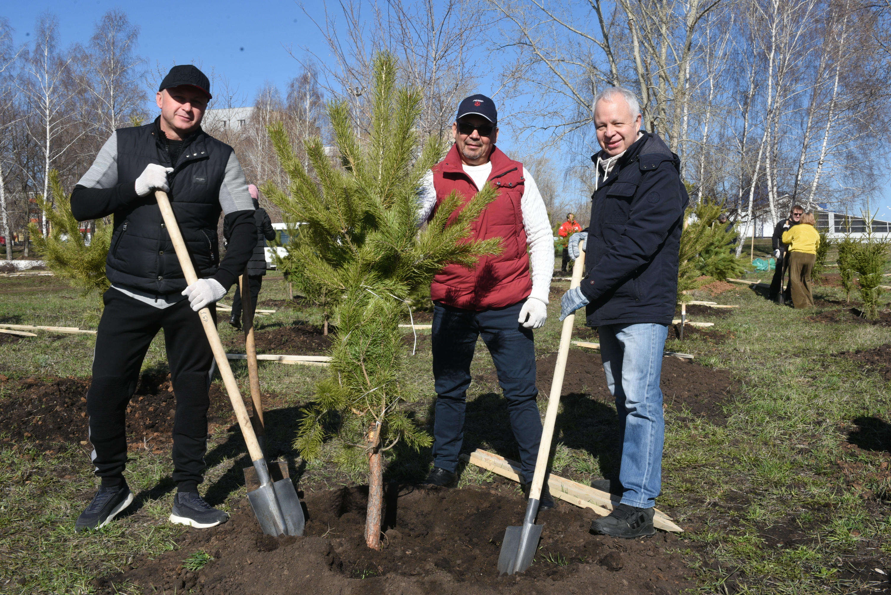 В Набережных Челнах идет городской субботник. У строительного колледжа имени Е.Н. Батенчука депутаты Городского Совета высадили 25 елей и 25 сосен.