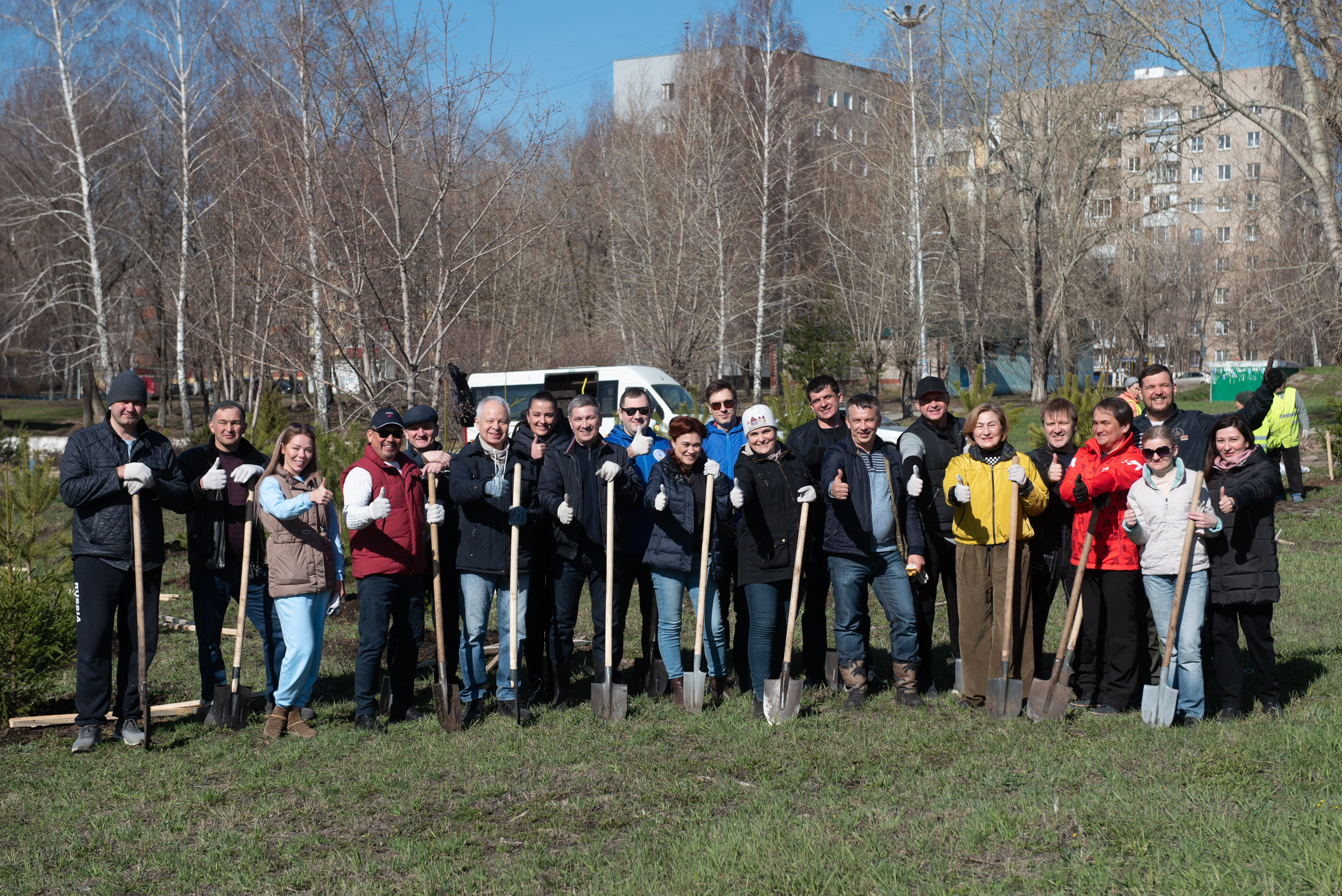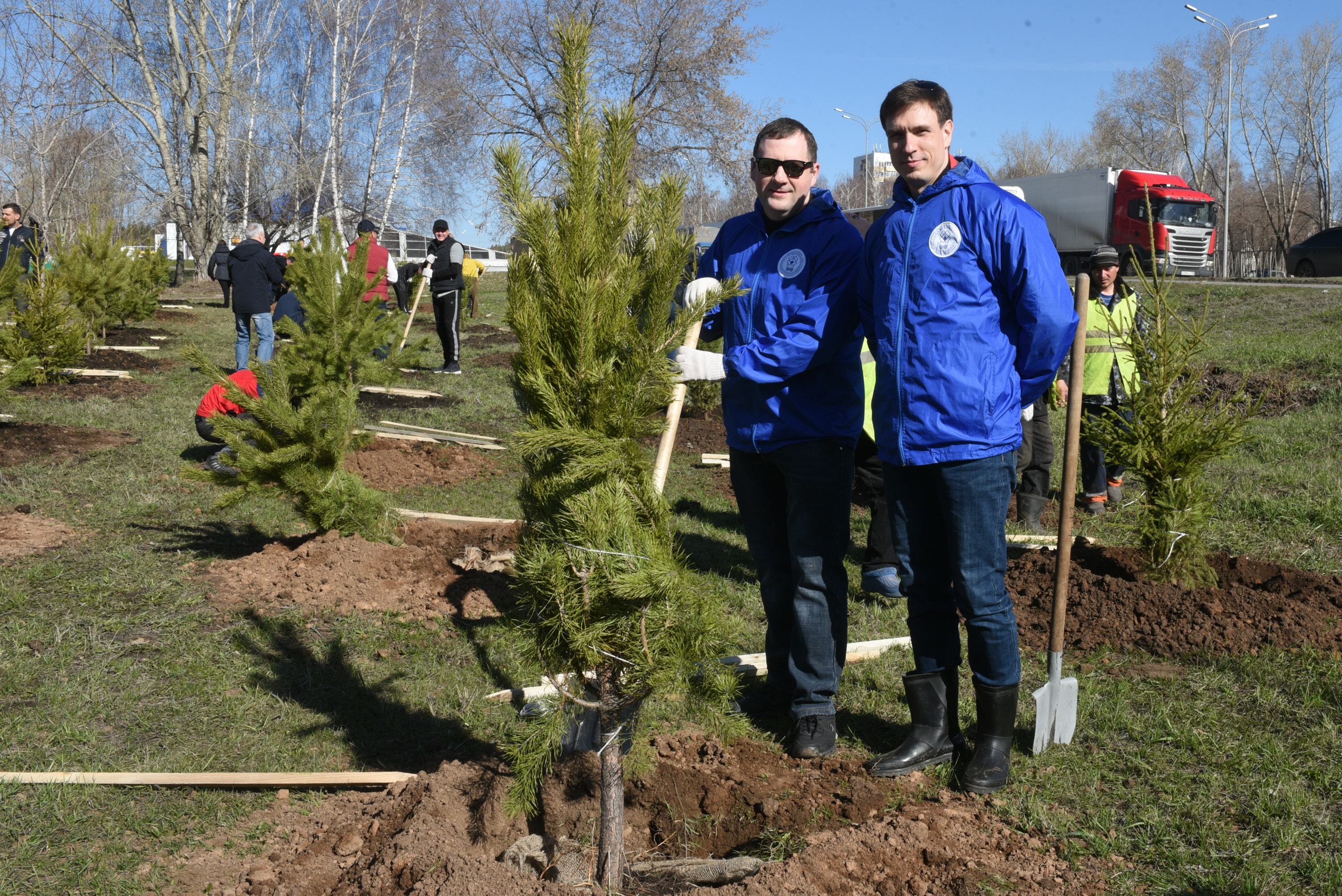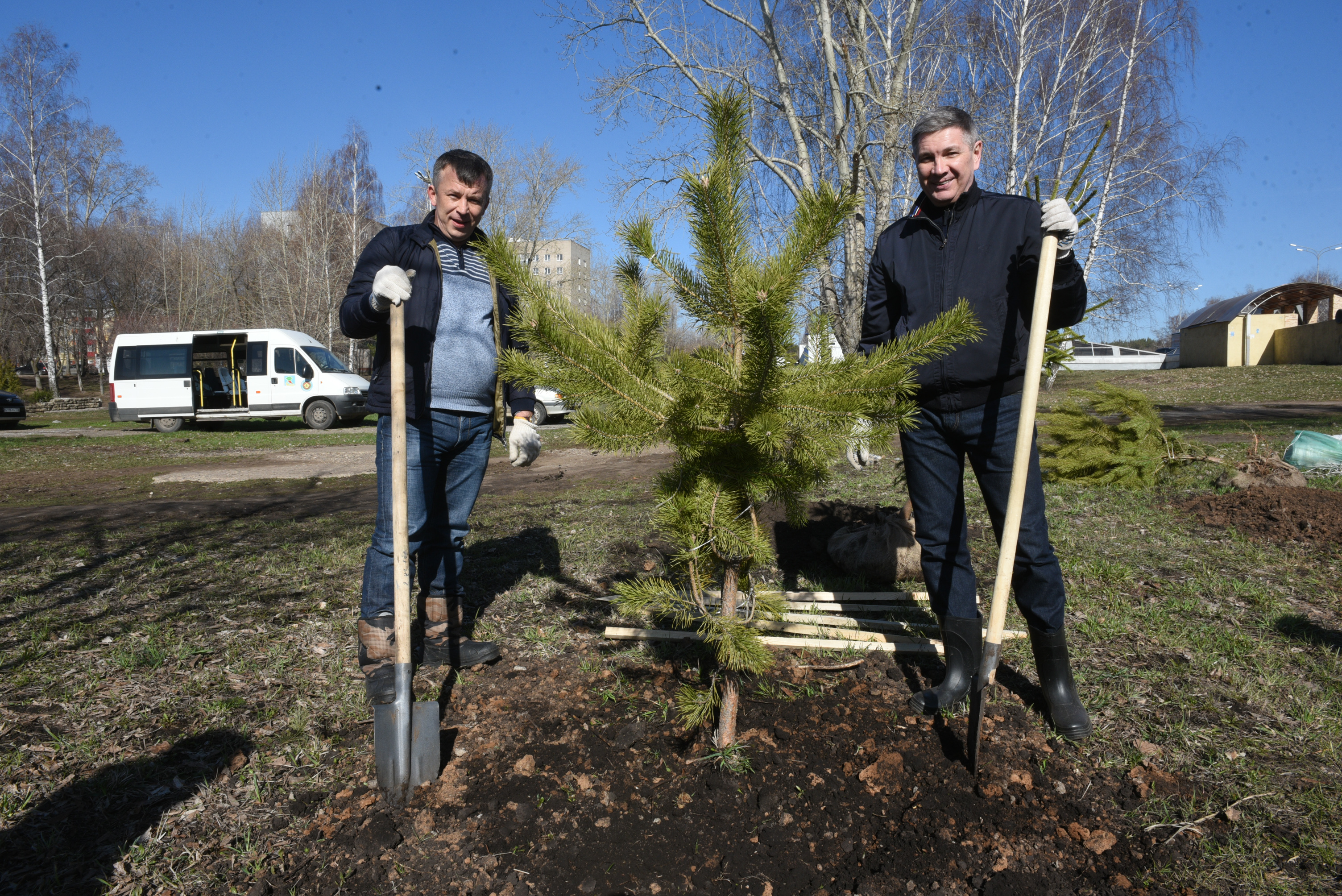 В Набережных Челнах идет городской субботник. У строительного колледжа имени Е.Н. Батенчука депутаты Городского Совета высадили 25 елей и 25 сосен.