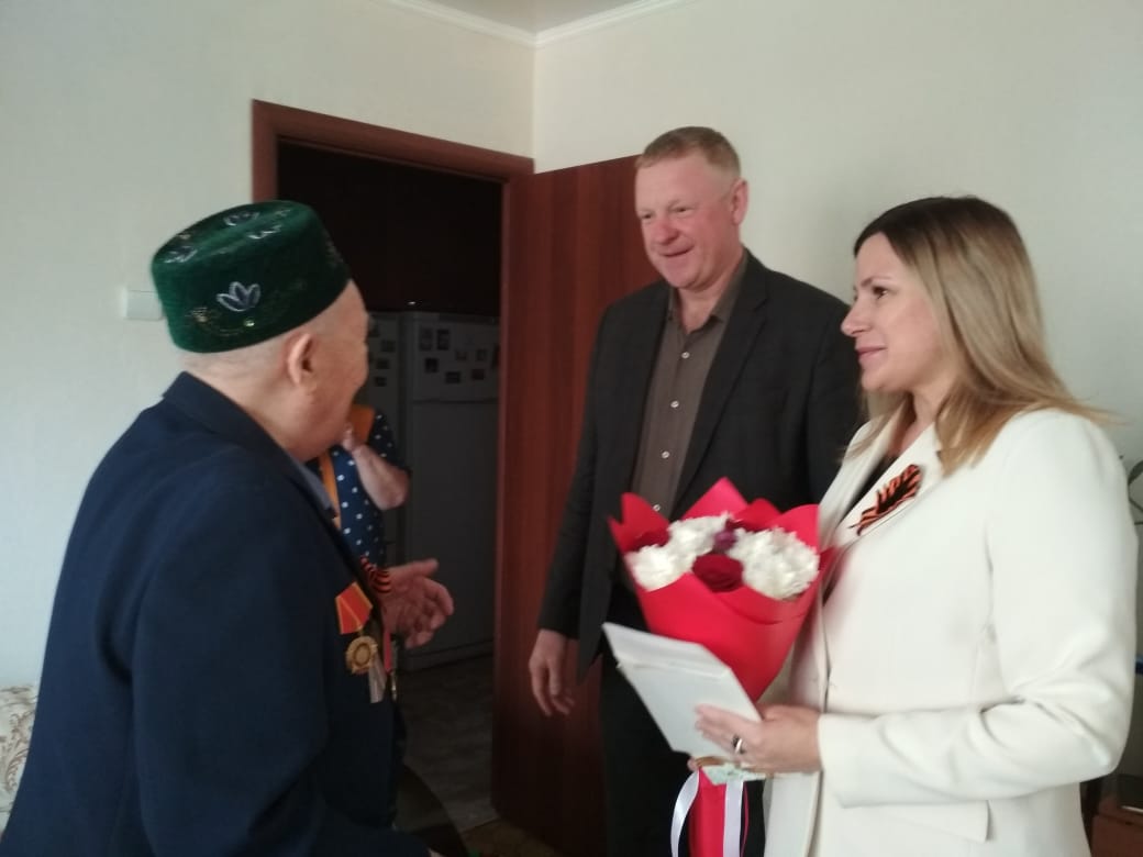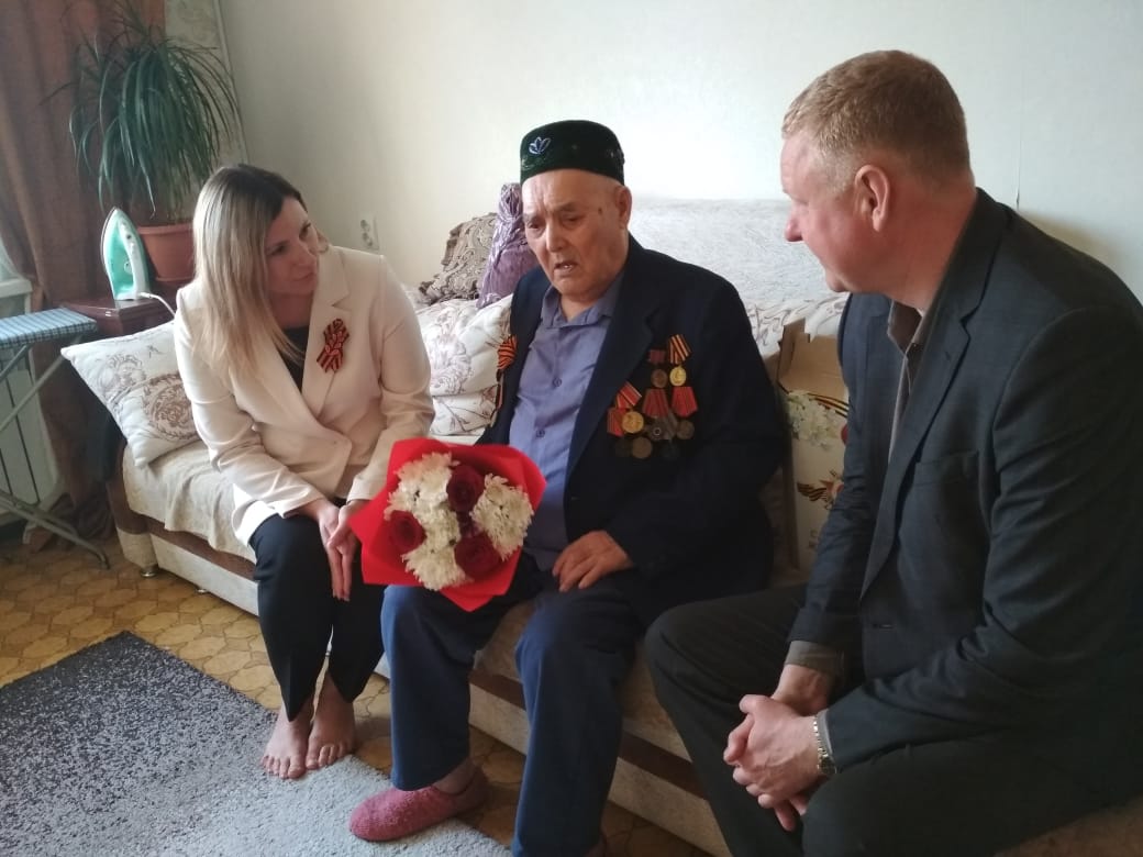 Заместитель мэра Ирина Сагидуллина от имени Президента Республики Татарстан Рустама Минниханова и мэра города Наиля Магдеева вручила поздравления и подарок участнику войны Тагиру Юсупмурзиновичу Мурзину . К поздравлениям присоединился депутат Городского Совета Эдуард Панфилов. Ветерану пожелали крепкого здоровья, чтобы с бодростью духа встретить 77-летие Победы в рядах героев той далекой войны.