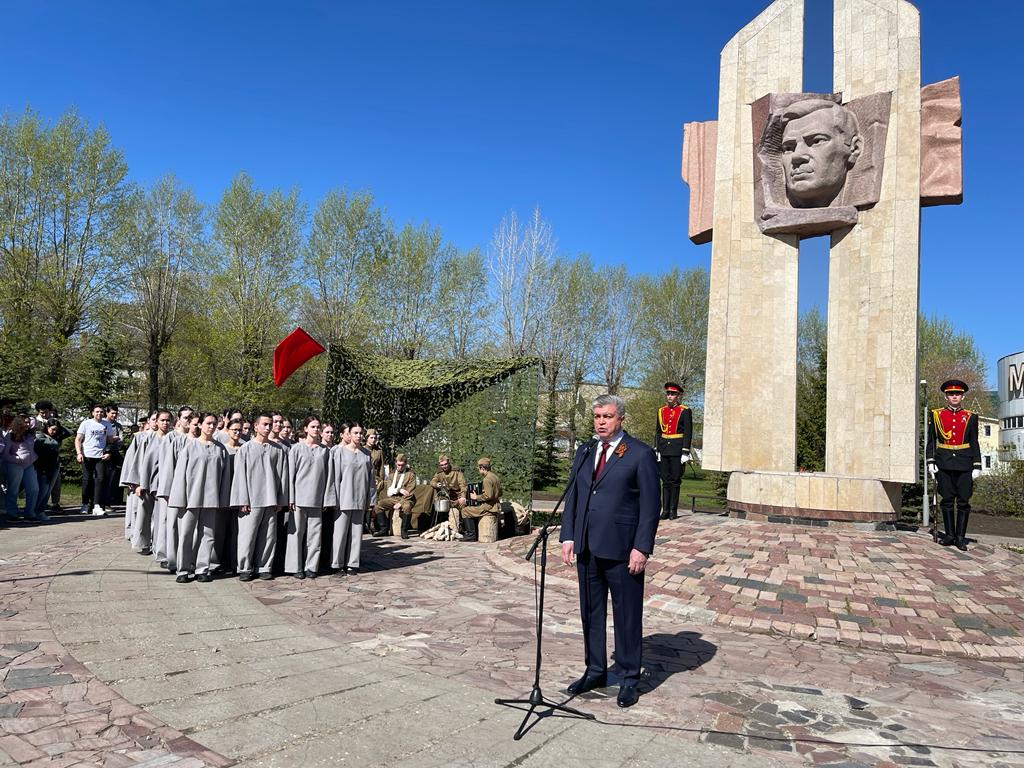 Празднование Дня Победы в Набережных Челнах традиционно начинается с возложения цветов к памятнику Героя Советского Союза Мусы Джалиля.