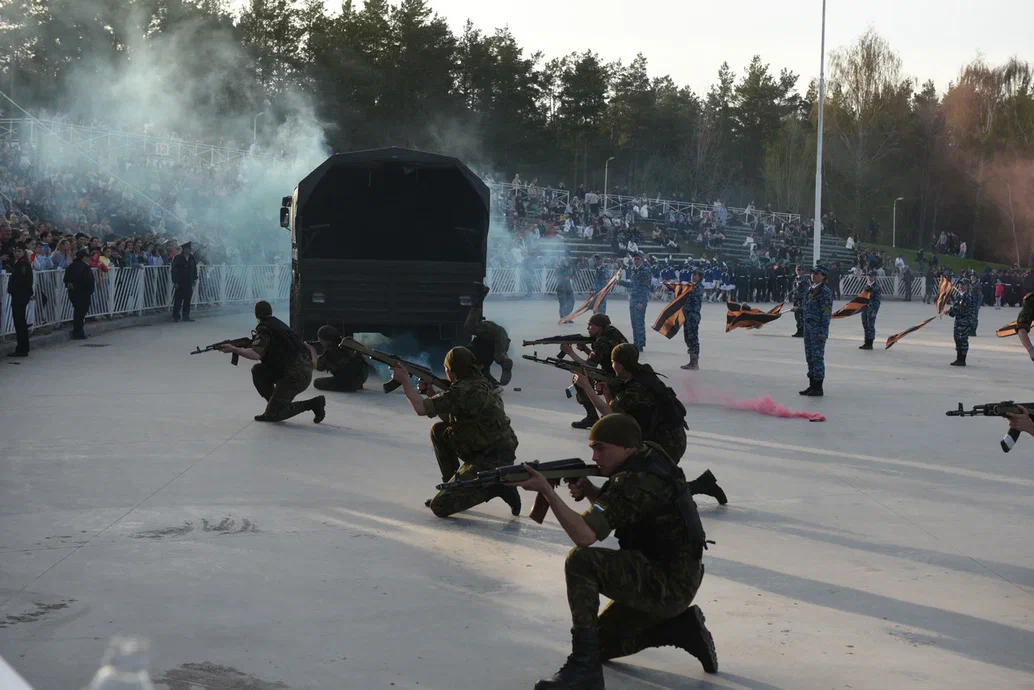 На майдане парка «Прибрежный» развернулось театрализованное представление «За Победу!», посвященное 77-й годовщине победы в Великой Отечественной войне. Участниками представления стали учащиеся общеобразовательных и кадетских школ, студенты и творческие коллективы города. Всего в представлении было задействовано 2 650 человек.