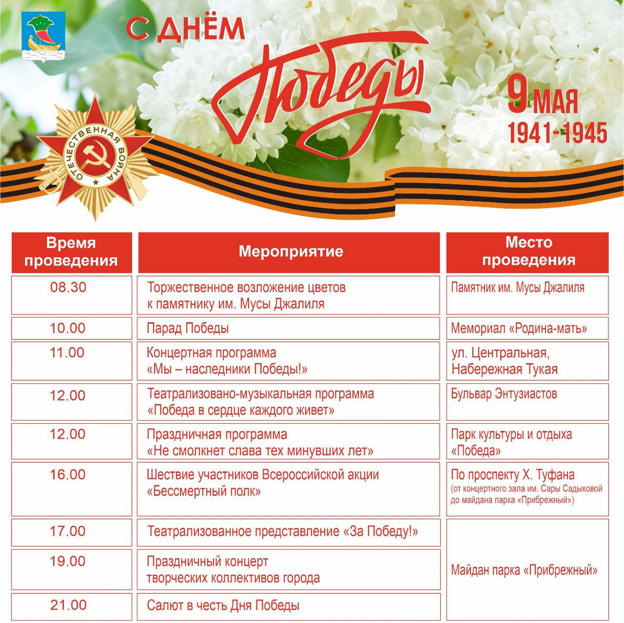 Шәһәрнең рәсми сайты 1941-1945 еллардагы Бөек Ватан сугышында Җиңүнең 77 еллыгын бәйрәм итү кысаларында чаралар исемлеген бастыра.
