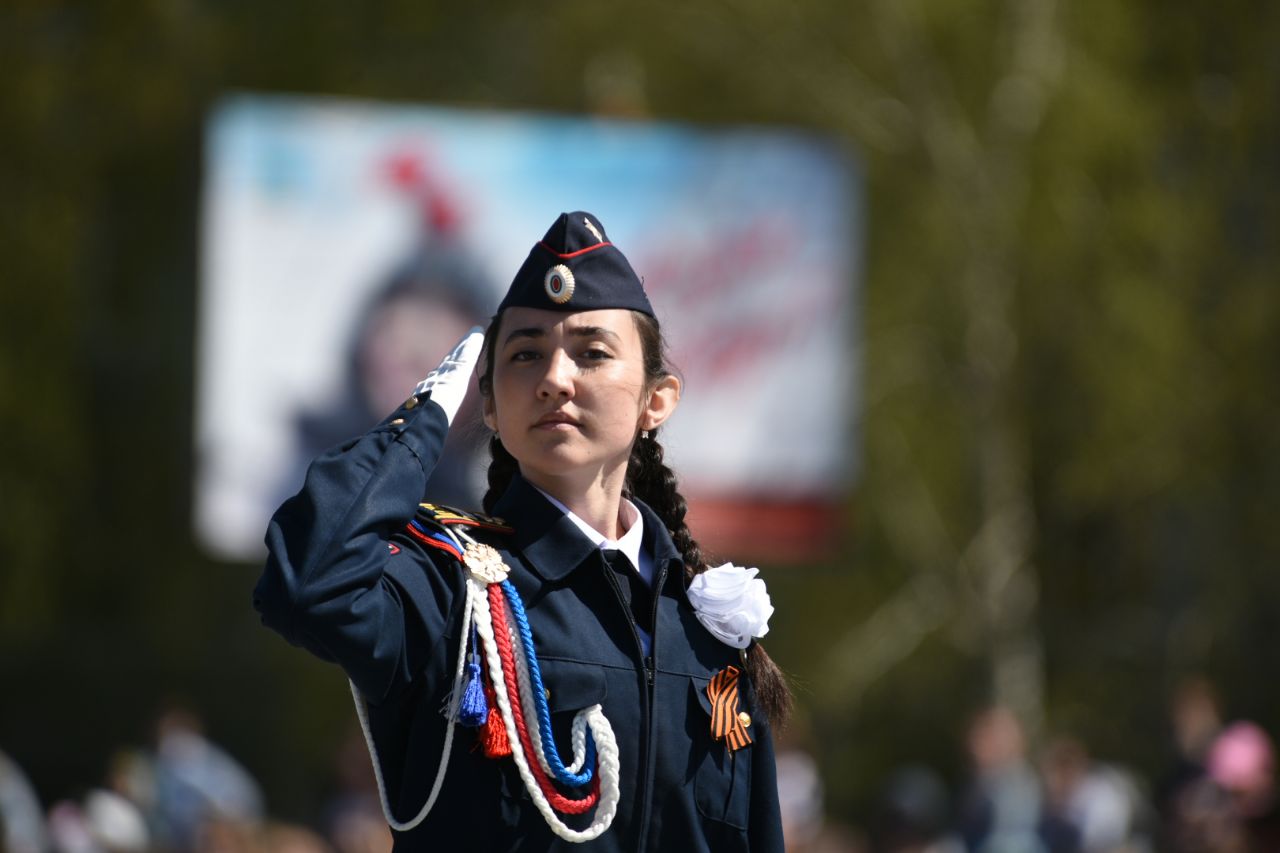 Торжественный марш возглавила группа мажореток парадно-строевого расчета Кадетской школы №82 имени героя Советского Союза Ильдара Маннанова. Участницы – победители международного Конкурса-фестиваля «Российский звездопад».