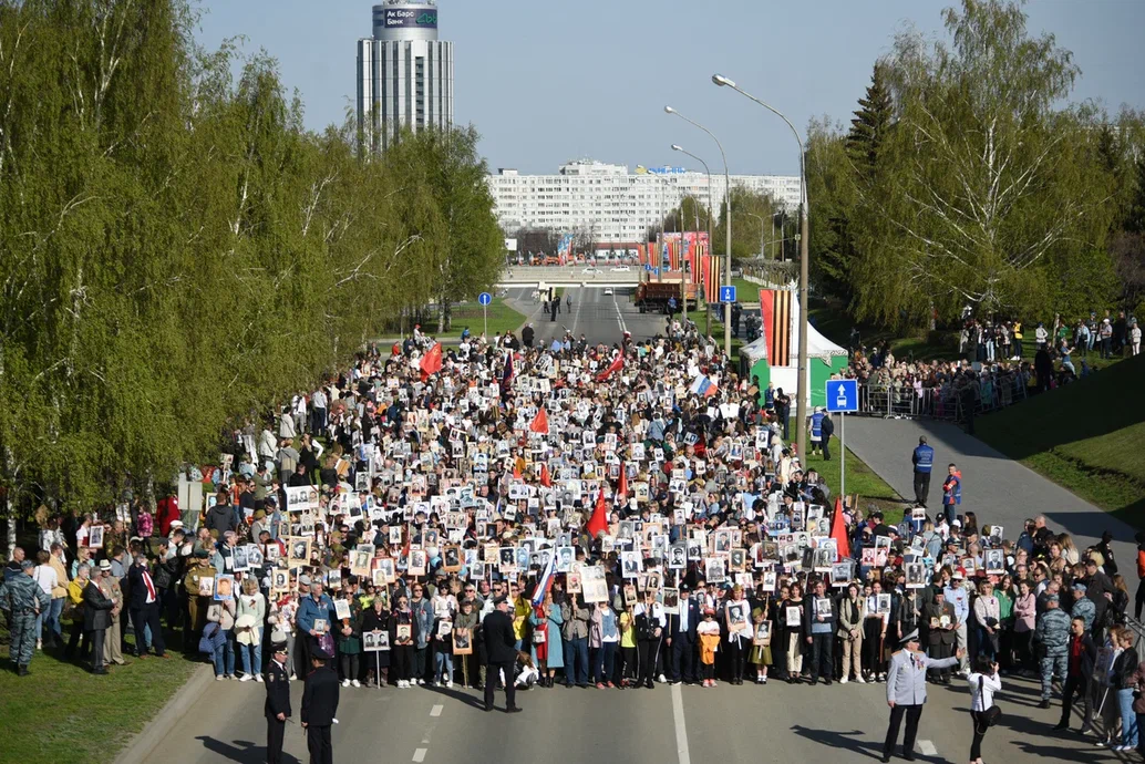 76 тысяч челнинцев в рамках акции «Бессмертный полк» прошли колонной по проспекту Хасана Туфана со штендерами с фотографиями участников Великой Отечественной войны в руках. Возглавил шествие мэр города Наиль Магдеев. В акции также приняли участие руководитель Исполнительного комитета Фарид Салахов, заместители руководителя исполкома, депутаты Городского Совета.