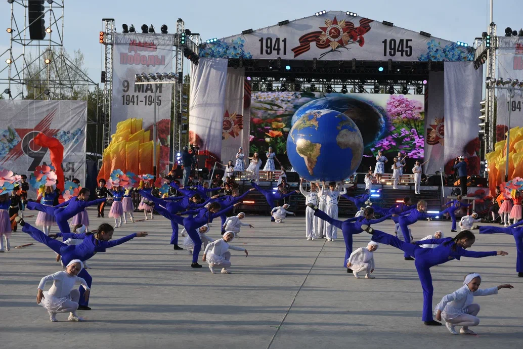 После на майдане парка Прибрежный развернулось театрализованное представление «За Победу!». Участниками представления стали учащиеся общеобразовательных и кадетских школ, студенты и творческие коллективы города. Всего в представлении было задействовано 2 650 человек.