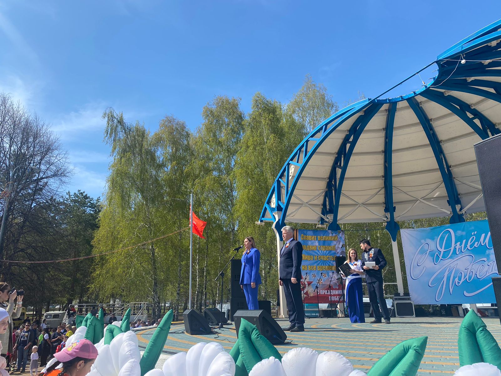 В ходе праздничного мероприятия прозвучали произведения Мусы Джалиля, песня «Тишина» в исполнении солистов вокальной студии «Шарм», песня «О той весне кино идёт» в исполнении хорового коллектива «Батутта», а также другие музыкально-литературные композиции.
