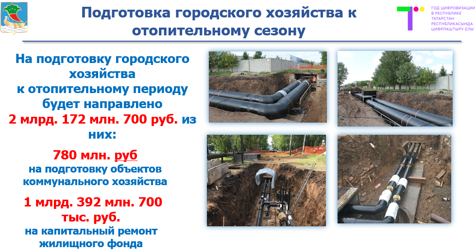 Согласно озвученной информации объем работ, затраченный на подготовку городского хозяйства к отопительному периоду 2021-2022годов, составил более 2,3 млрд рублей.