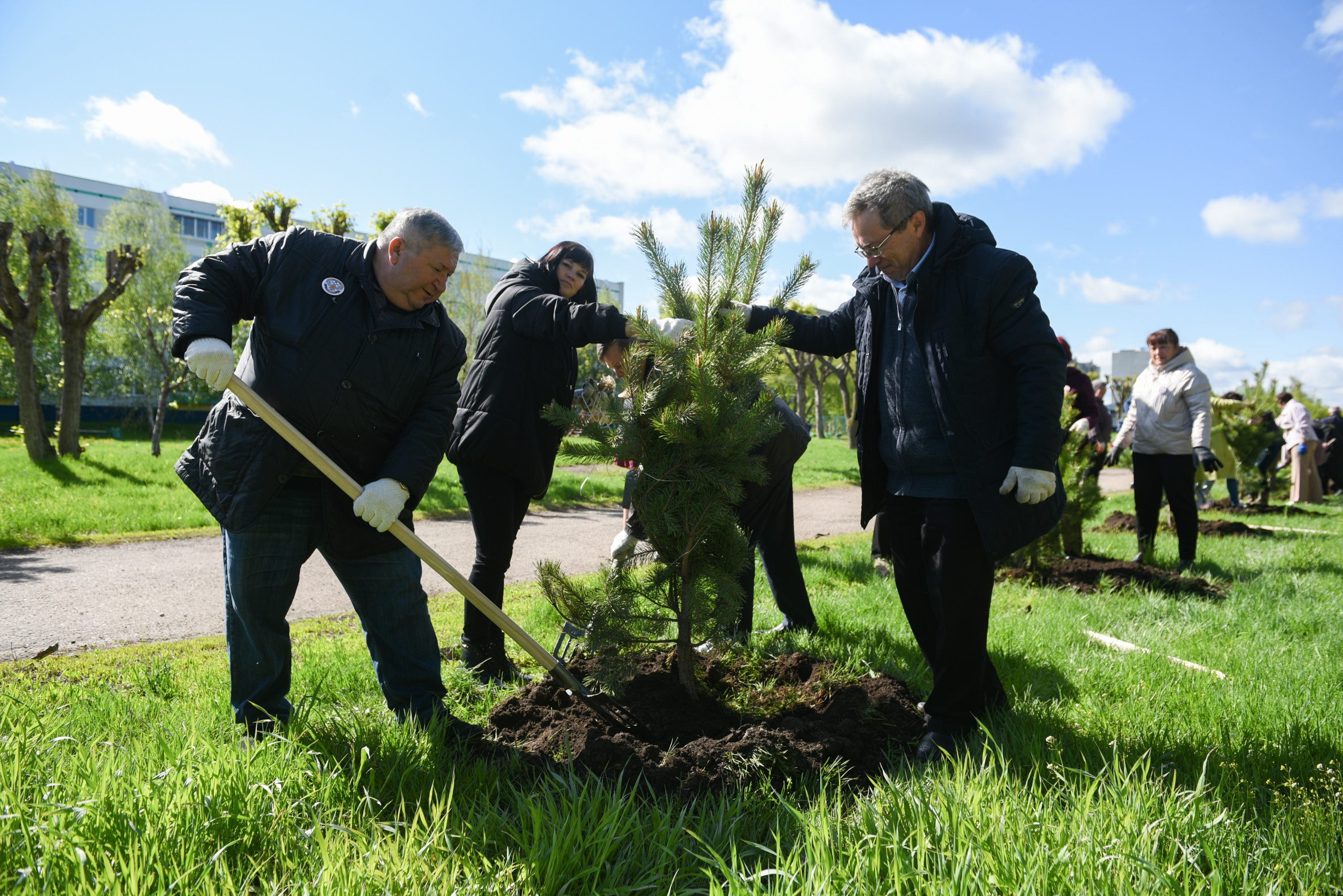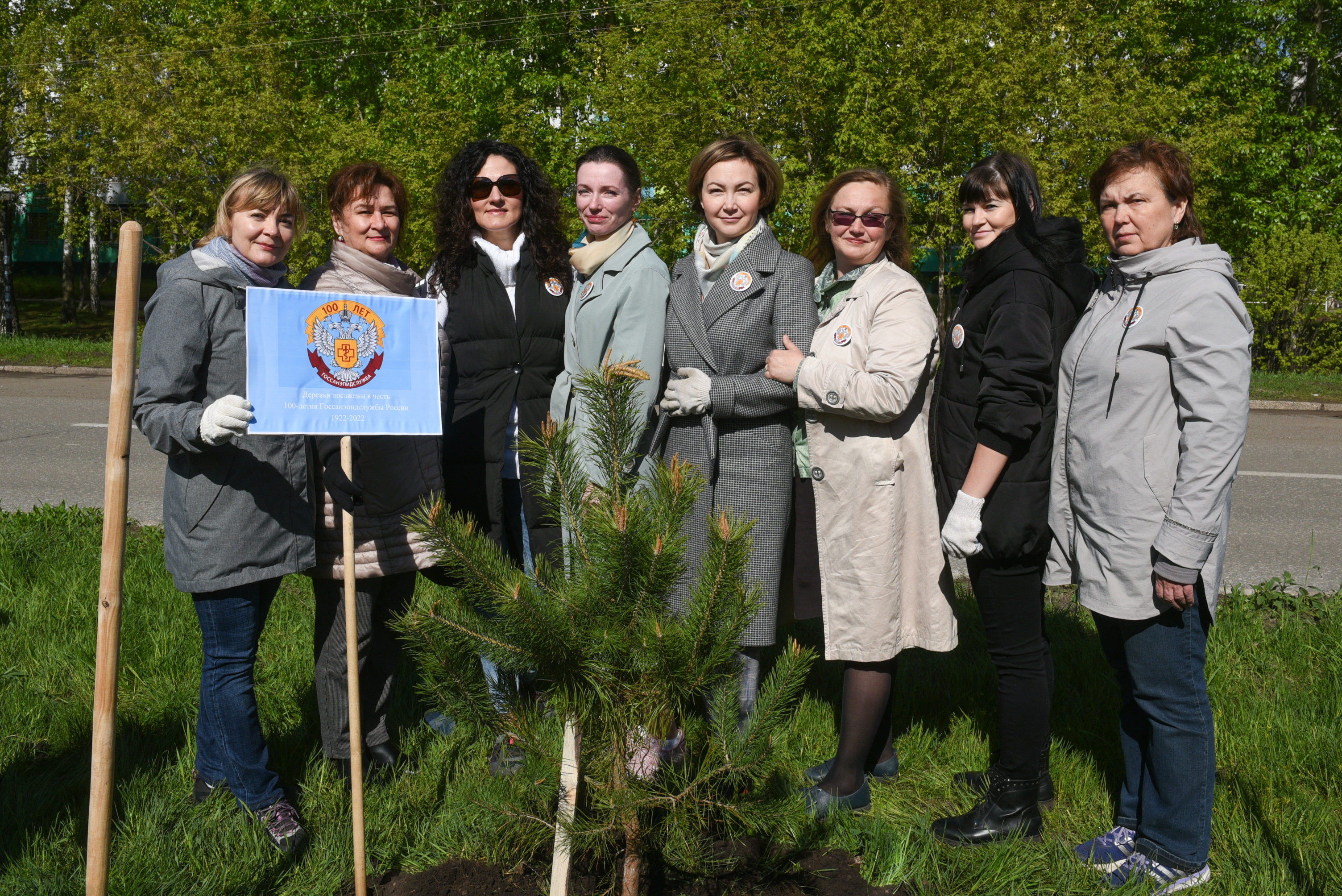 Аллея в честь 100-летия санитарно-эпидемиологической службы появилась в 15 комплексе пос. ЗЯБ. Сегодня коллективами санитарных служб было - это порядка 40 сотрудников, высажено более ста саженцев сосен.