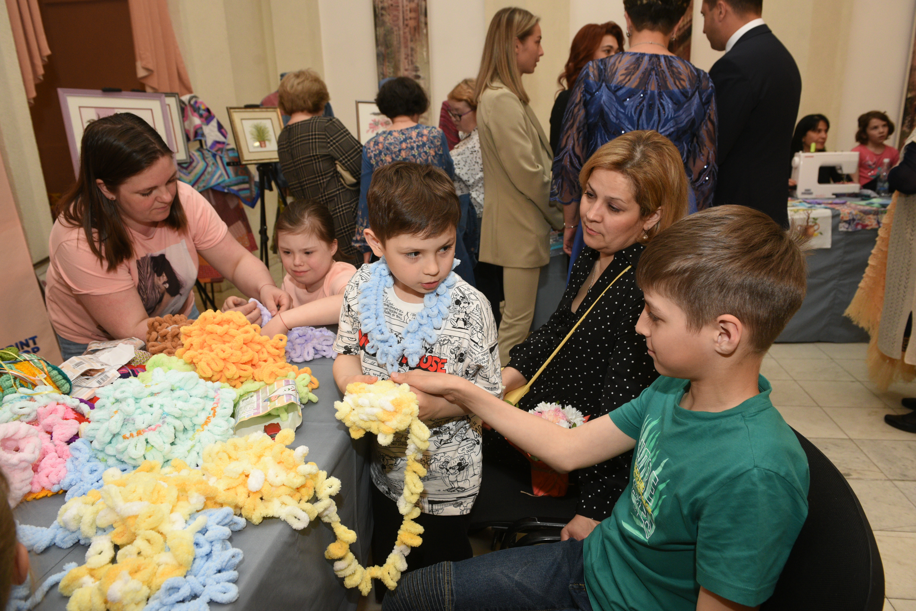 До начала концерта для всех присутствующих были устроены мастер-классы по обучению вязанию сумочек, шитью, аппликации. «Эти занятия хорошо развивают моторику и сказываются на развитии», - поделилась педагог центра «Чудо-дети» Светлана Тюрьмина.