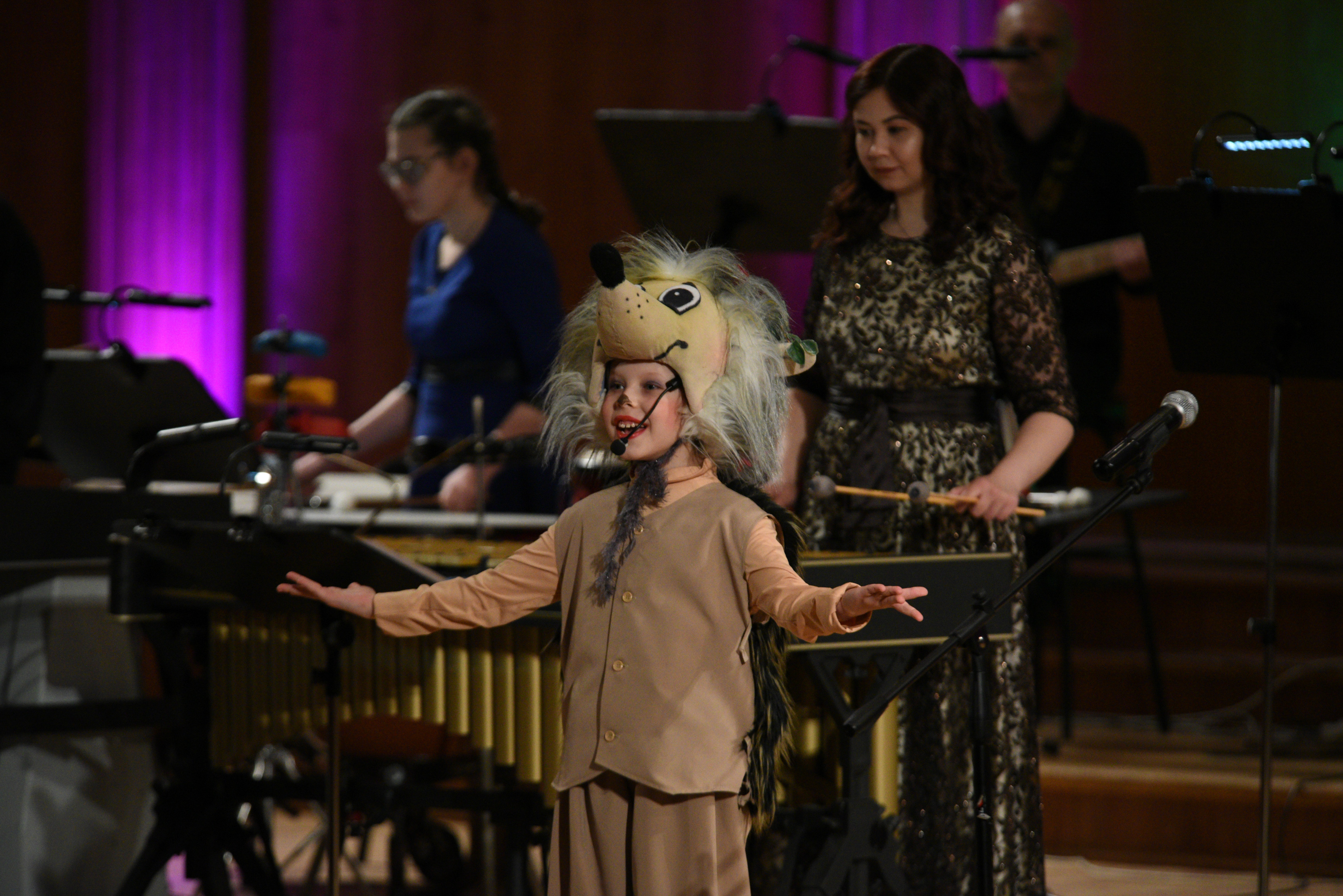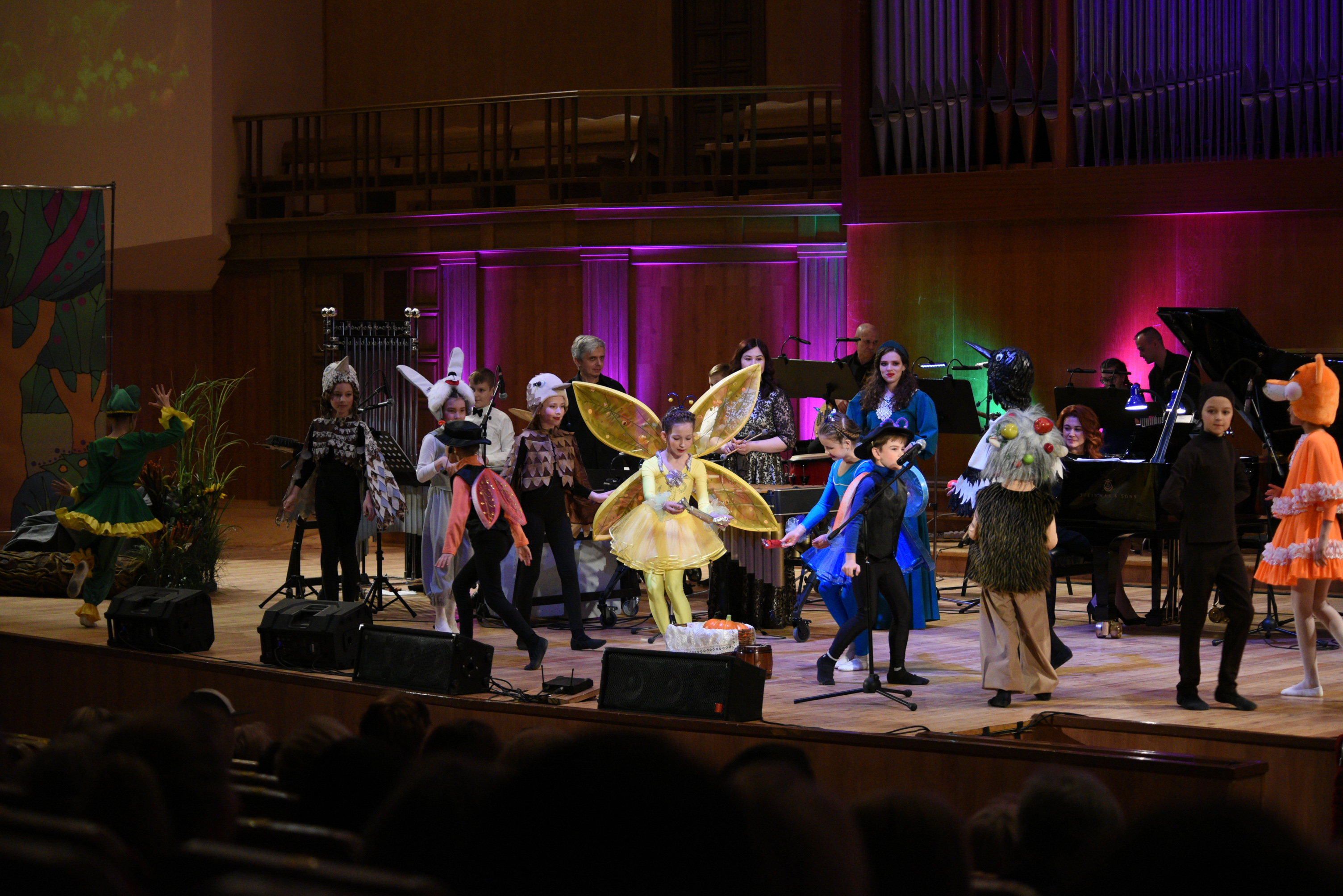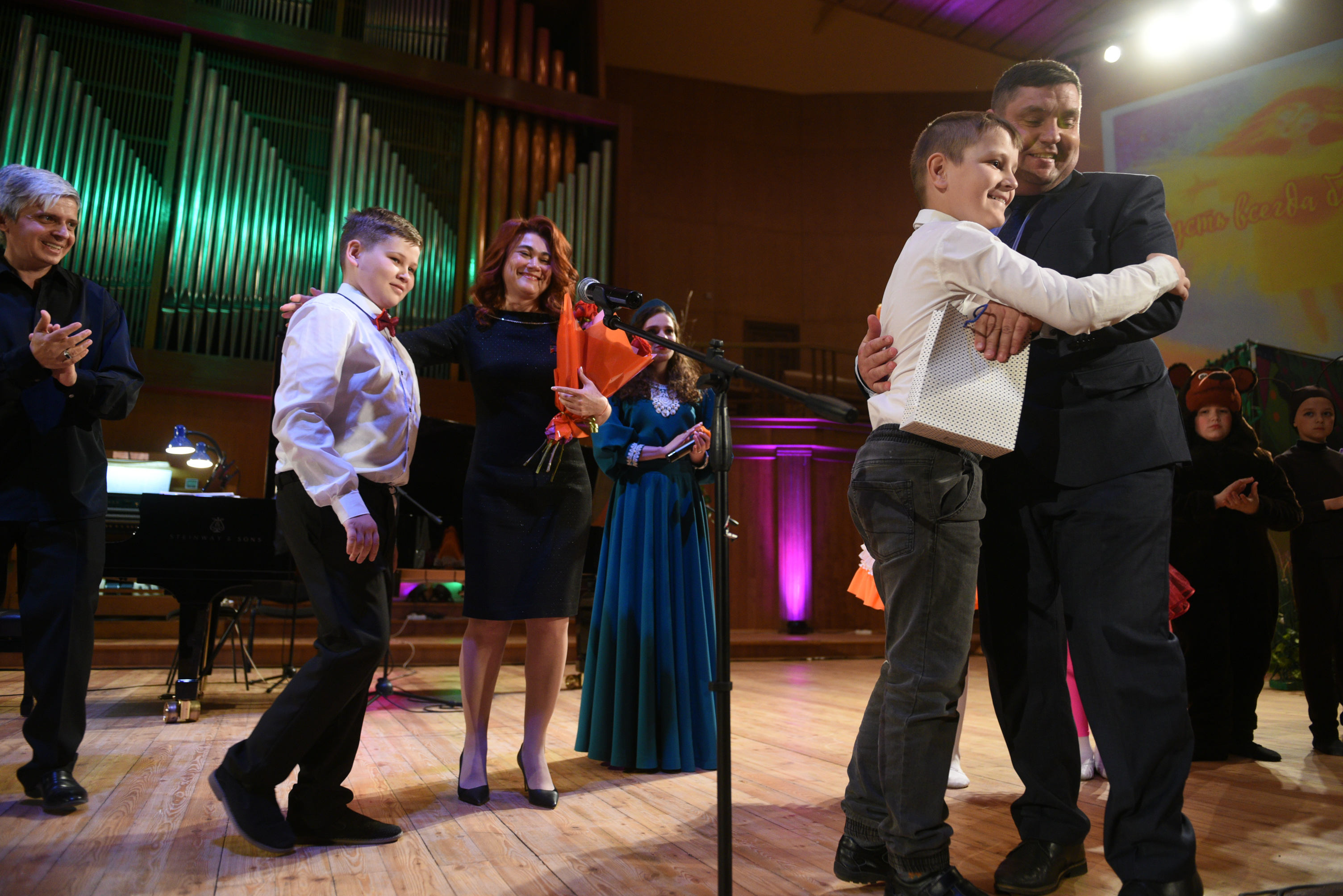 На сцене Органного зала выступили не только солисты, но и друзья центра. Главным сюрпризом стала премьера - дебют инклюзивного театра, выступление ансамбля ударных инструментов центра «Чудо-дети».