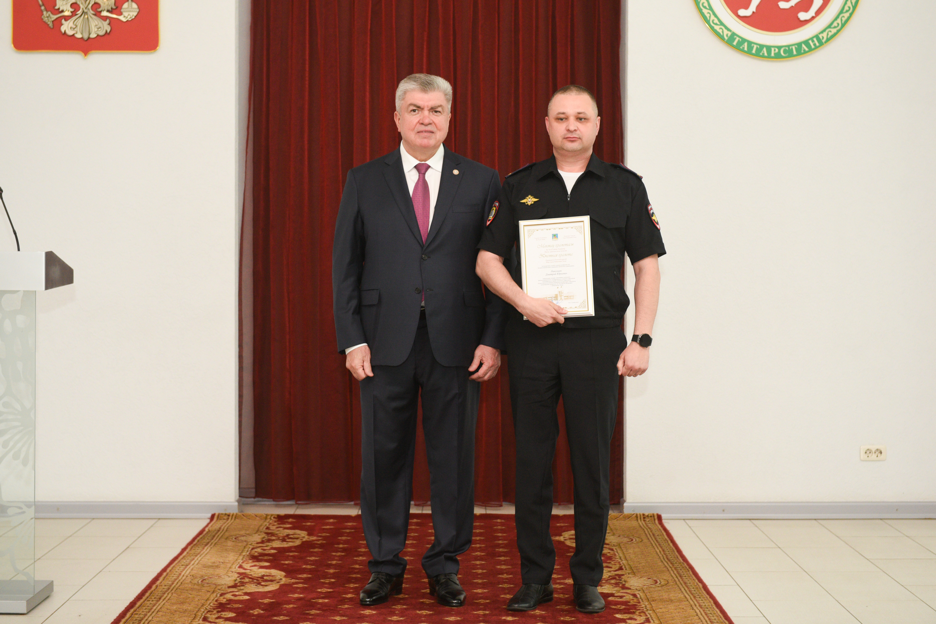 За безупречную службу в органах внутренних дел, большой личный вклад в укрепление законности и правопорядка Почетной грамотой мэра города награжден заместитель начальника филиала Всероссийского института повышения квалификации сотрудников министерства внутренних дел Российской Федерации г. Набережные Челны Дмитрий Николаев.