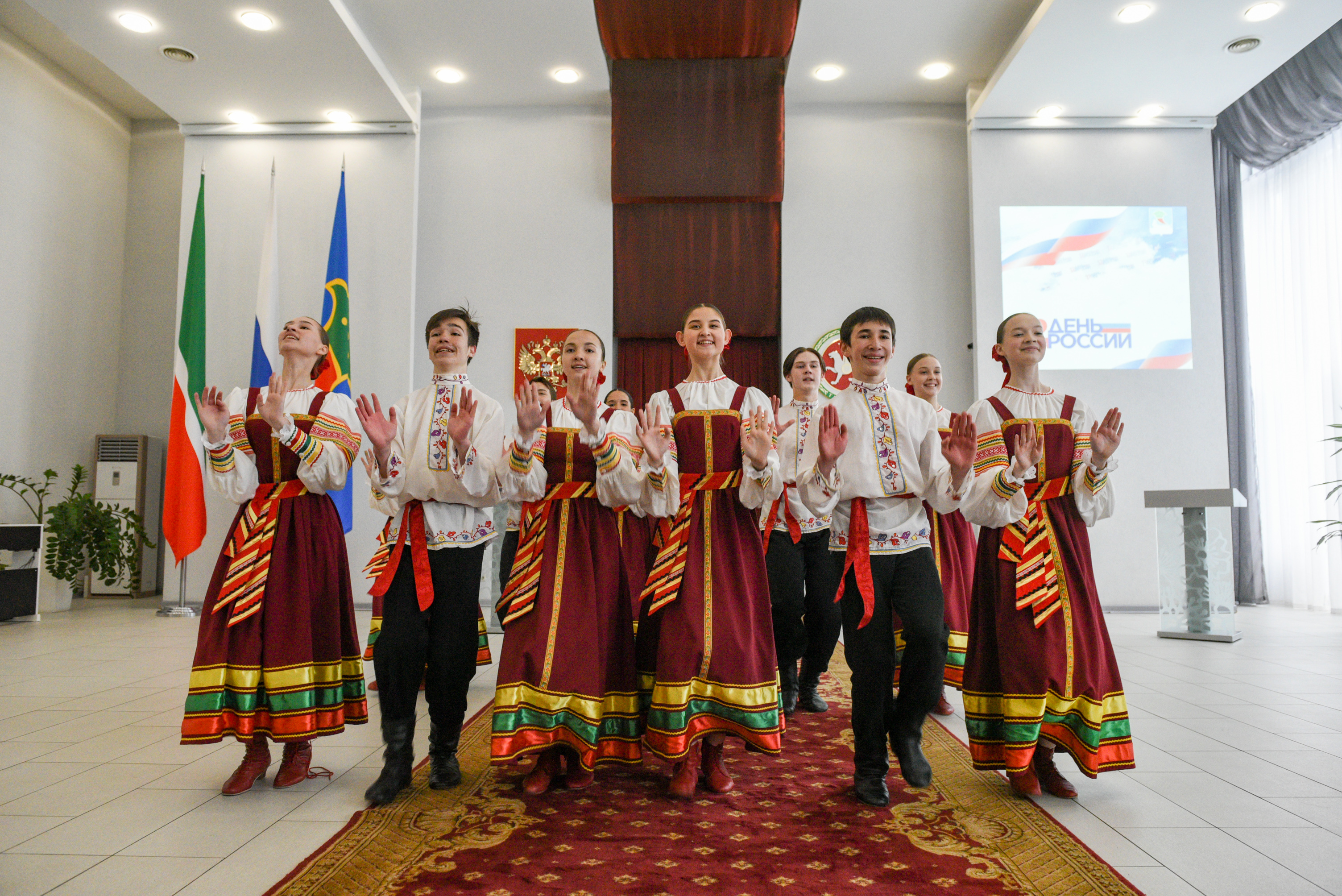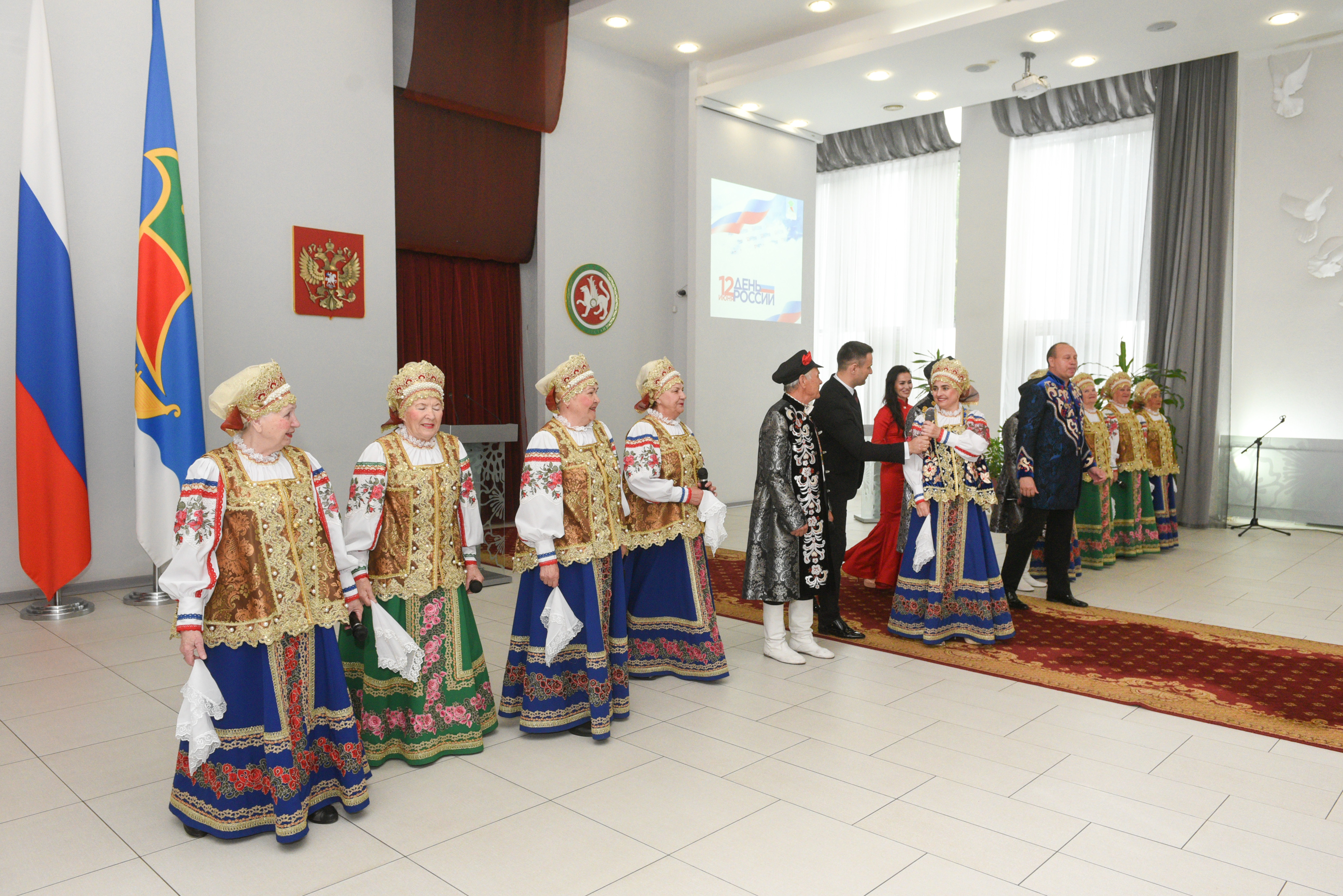 Перед гостями выступили Нияз Хаматшин, Айзиля Вахитова, Олеся Шимон, вокальный ансамбль «Вольница» и ансамбль танца «Татарстан».