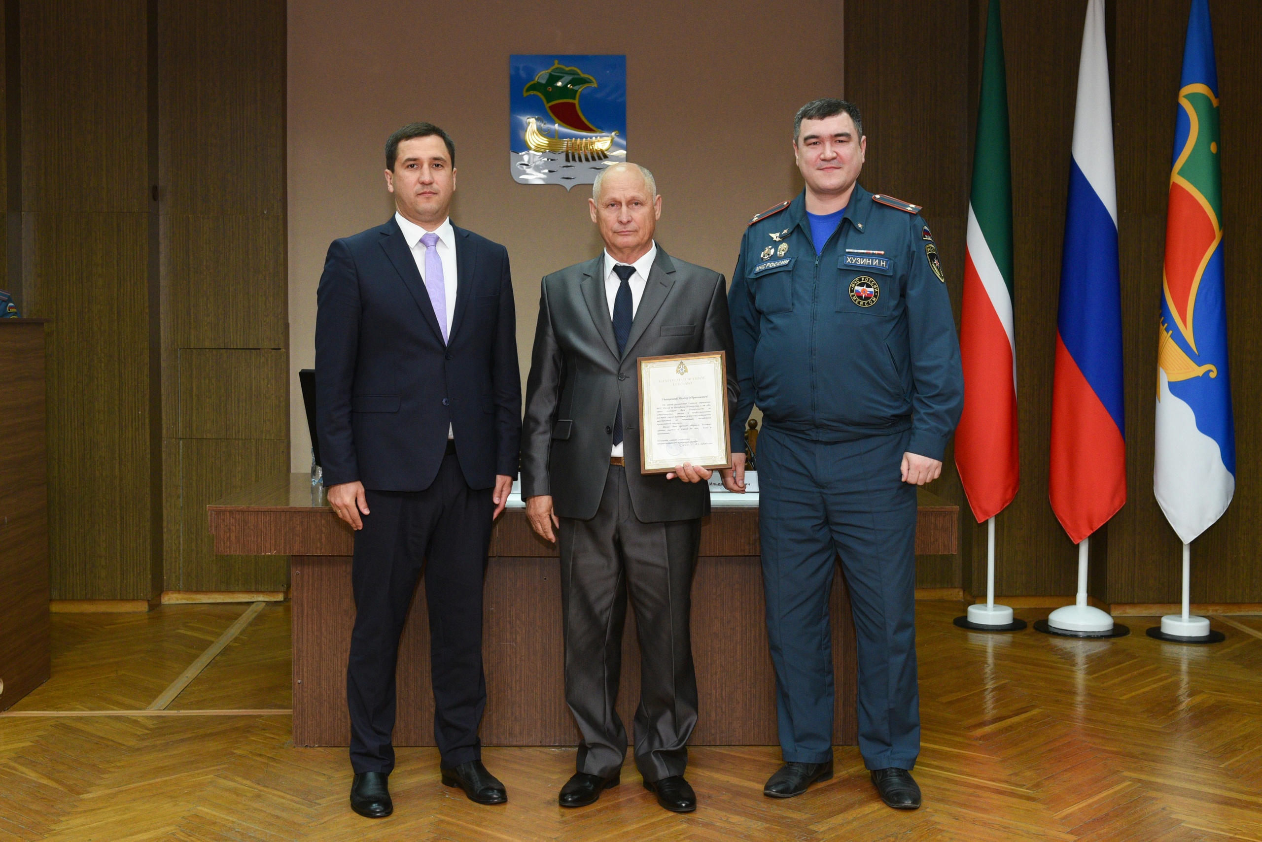Бүләкләү тантанасы шәһәр мэриясендә узды. Татарстан Республикасы буенча Россия ГТХМ Баш идарәсенең Рәхмәт хатларын Башкарма комитет җитәкчесе Фәрид Салахов һәм шәһәрнең янгынга каршы хезмәт башлыгы урынбасары Илдар Хуҗин тапшырдылар.