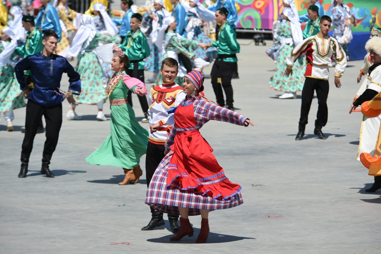 Продолжилась концертная программа выступлением государственного ансамбля фольклорной музыки Республики Татарстан под руководством народного артиста Республики Татарстан Айдара Файзрахманова.