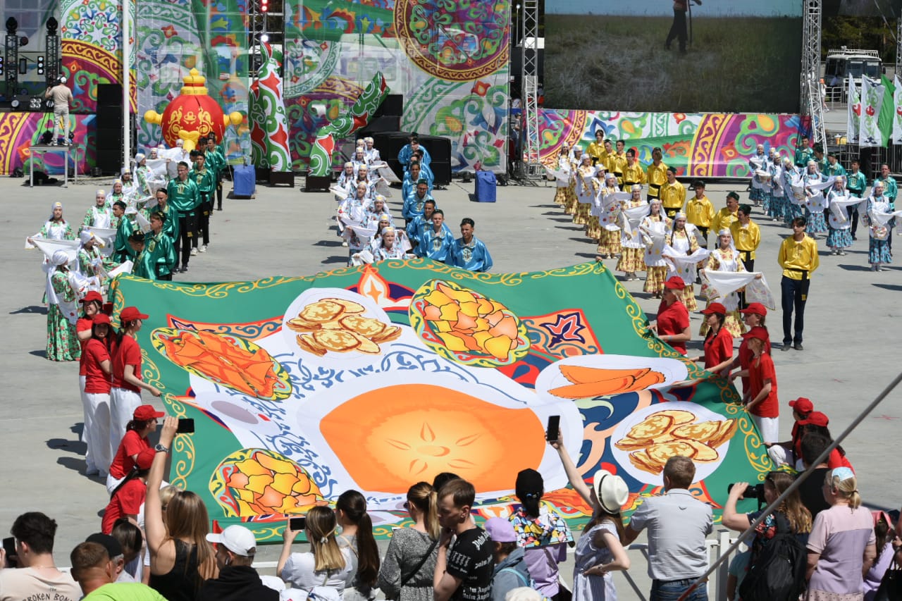 На городском майдане началось театрализованное представление «Родная земля – колыбель моя!». В постановке театрализованного представления принимают участие 1500 человек: артисты, профессиональные и творческие коллективы учреждений культуры, учащиеся средне-специальных и общеобразовательных учреждений города.