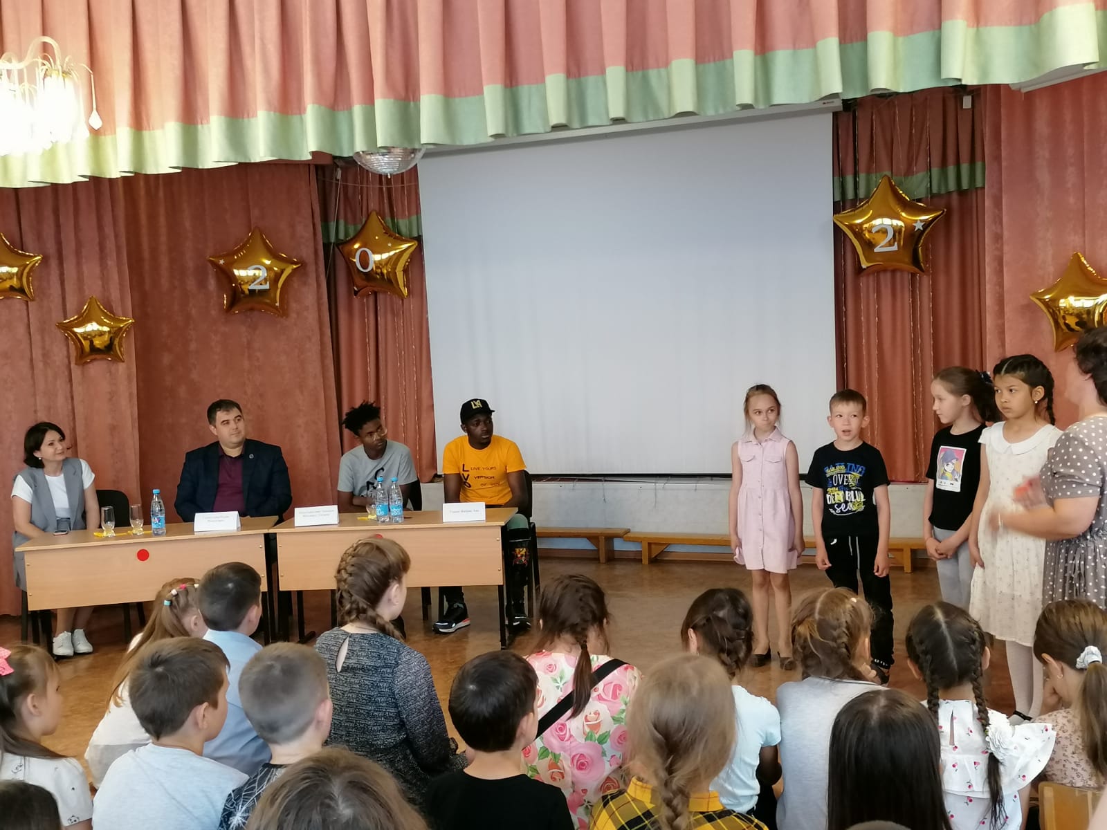 23 июня в пришкольном лагере прогимназии № 64 «Цветик-семицветик» прошел День дружбы. Ребята встречали иностранных гостей – студентов Набережночелнинского государственного педагогического университета. Встреча с зарубежными гостями прошла очень оживленно. Дети показали свои знания в области английского языка и задали интересующие их вопросы.