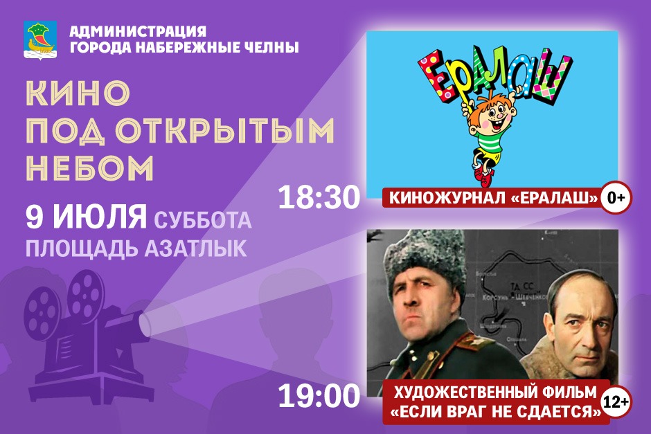 «Фильмы будут показываться еженедельно, каждую субботу. Мы приглашаем жителей и гостей нашего города. На этой неделе зрители увидят советскую военную драму «Если враг не сдается…» с Валентином Гафтом, – сообщил начальник управления культуры Румиль Карамиев.