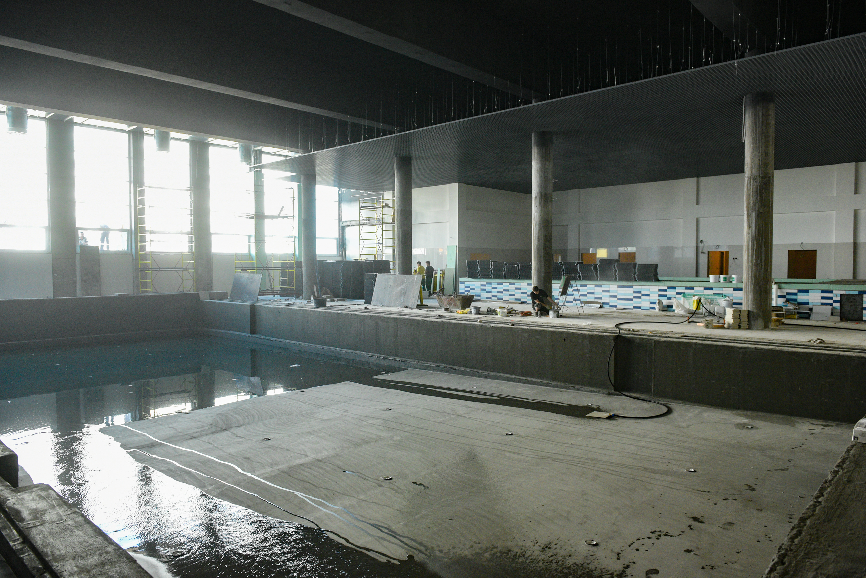В школе будет два бассейна, сейчас идет тестирование чаш.