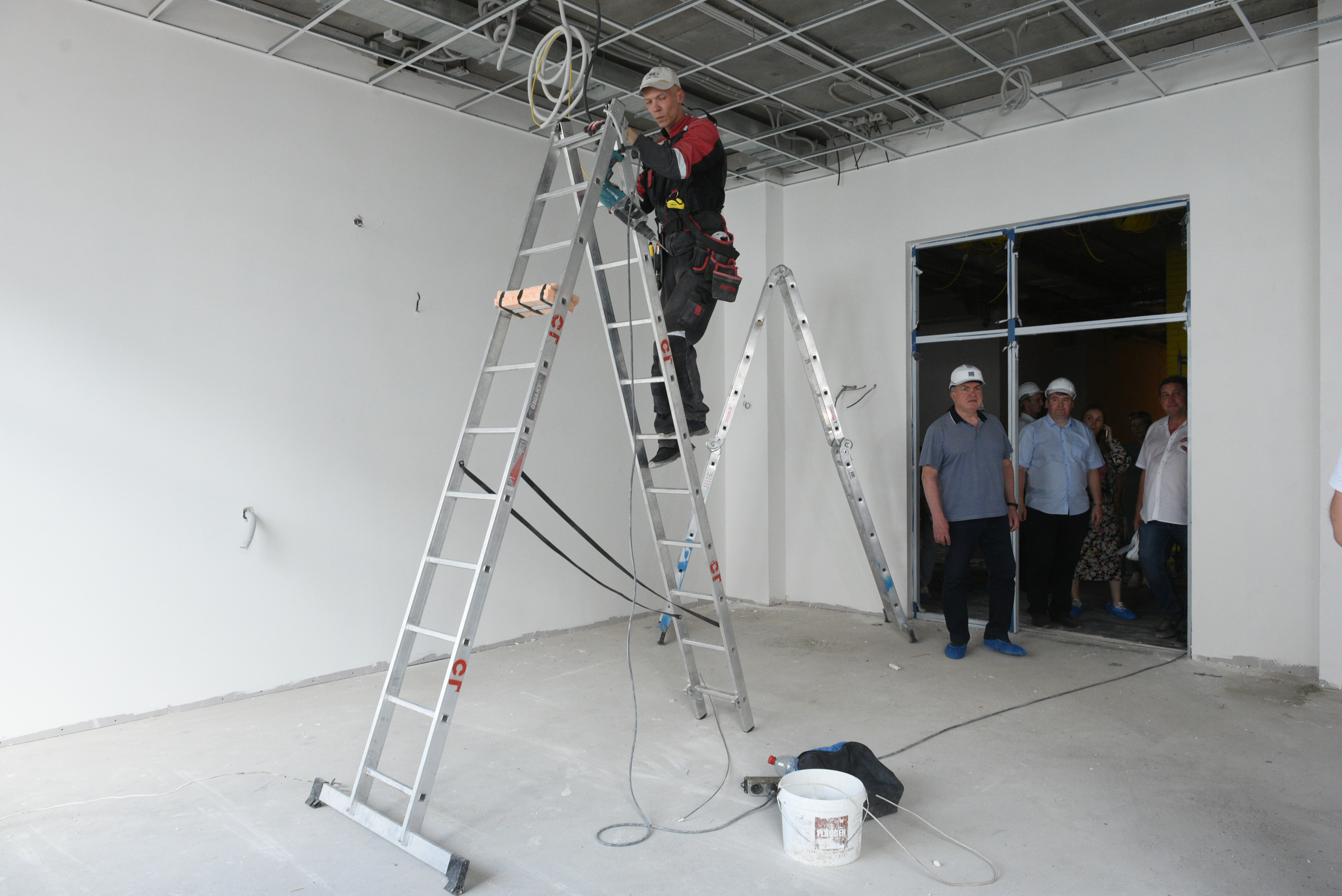 новой школы в 69-ом микрорайоне. После осмотра он отметил, что строители работают по