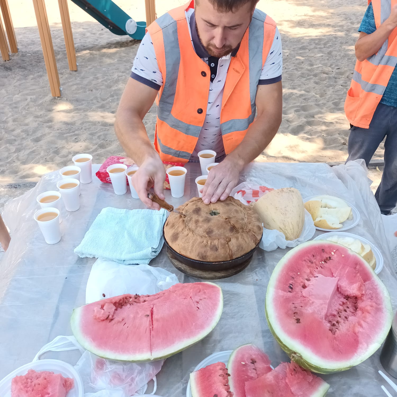 В благодарность за их ежедневный нелегкий труд активные жители угостили рабочих «Индорсервис» национальным блюдом – бэлеш.