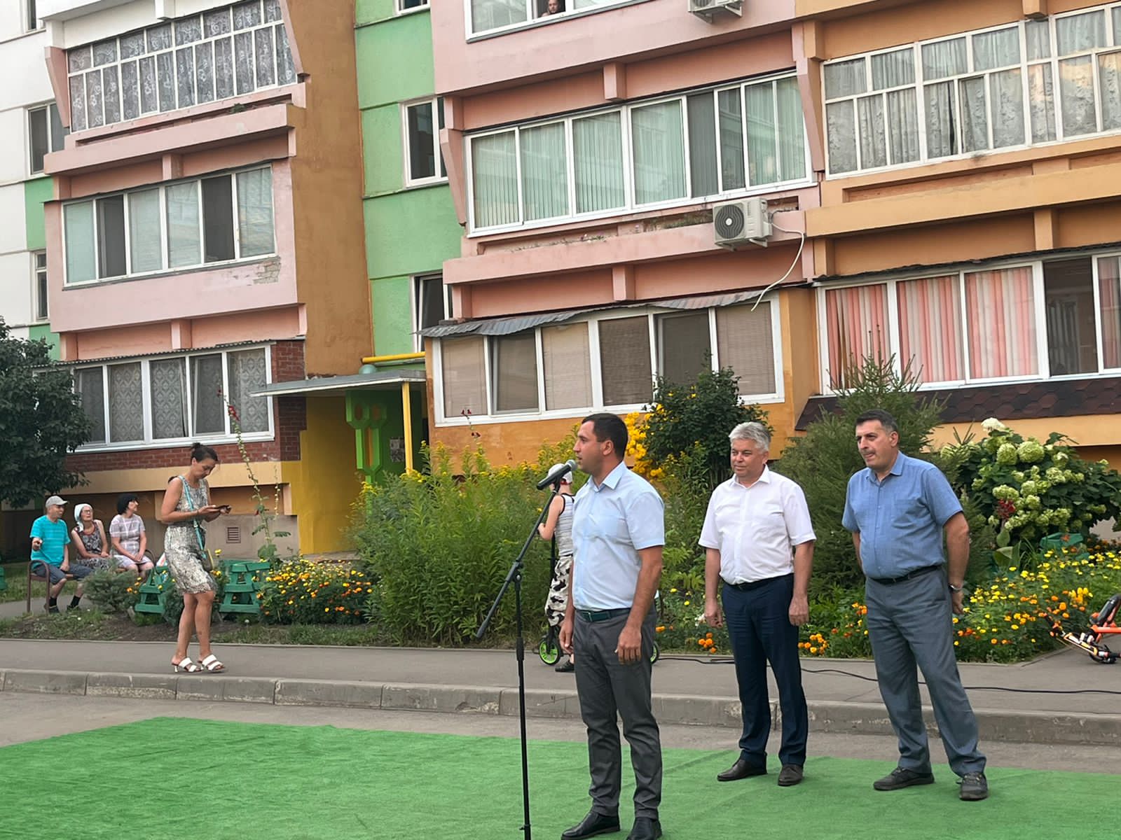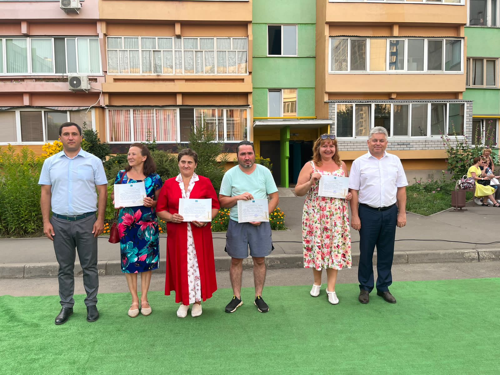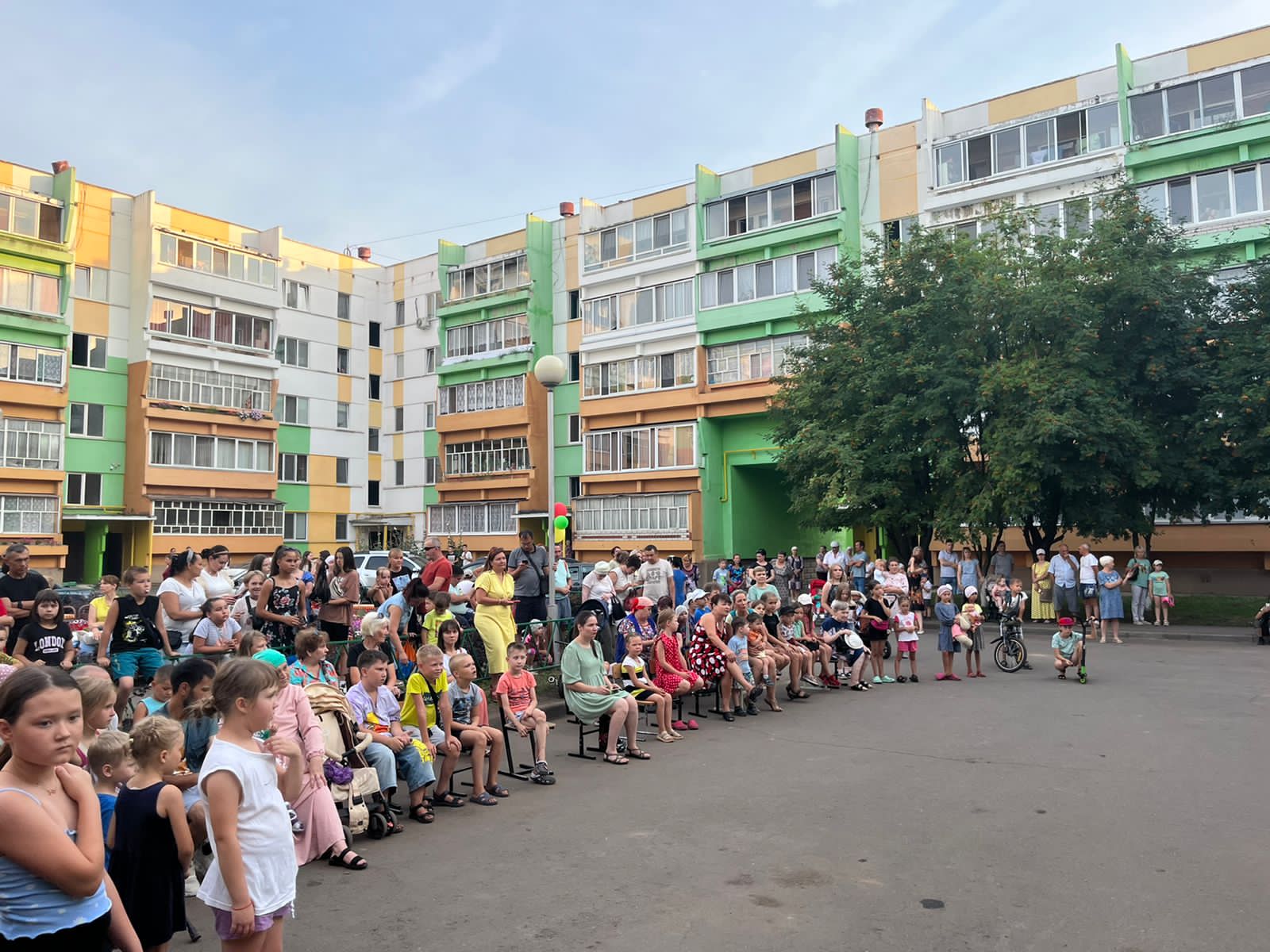 Праздник двора прошел и на территории 4 комплекса п.ГЭС. Открыли мероприятие заместитель главы муниципального образования город Набережные Челны Ирина Сагидуллина, депутат Городского Совета Рубин Бадиков, и.о.главы администрации Комсомольского района Фидарис Хабибуллин. В рамках Республиканской акции "Помоги собраться в школу" они вручили подарочные сертификаты детям из нуждающихся семей на покупку школьных принадлежностей.