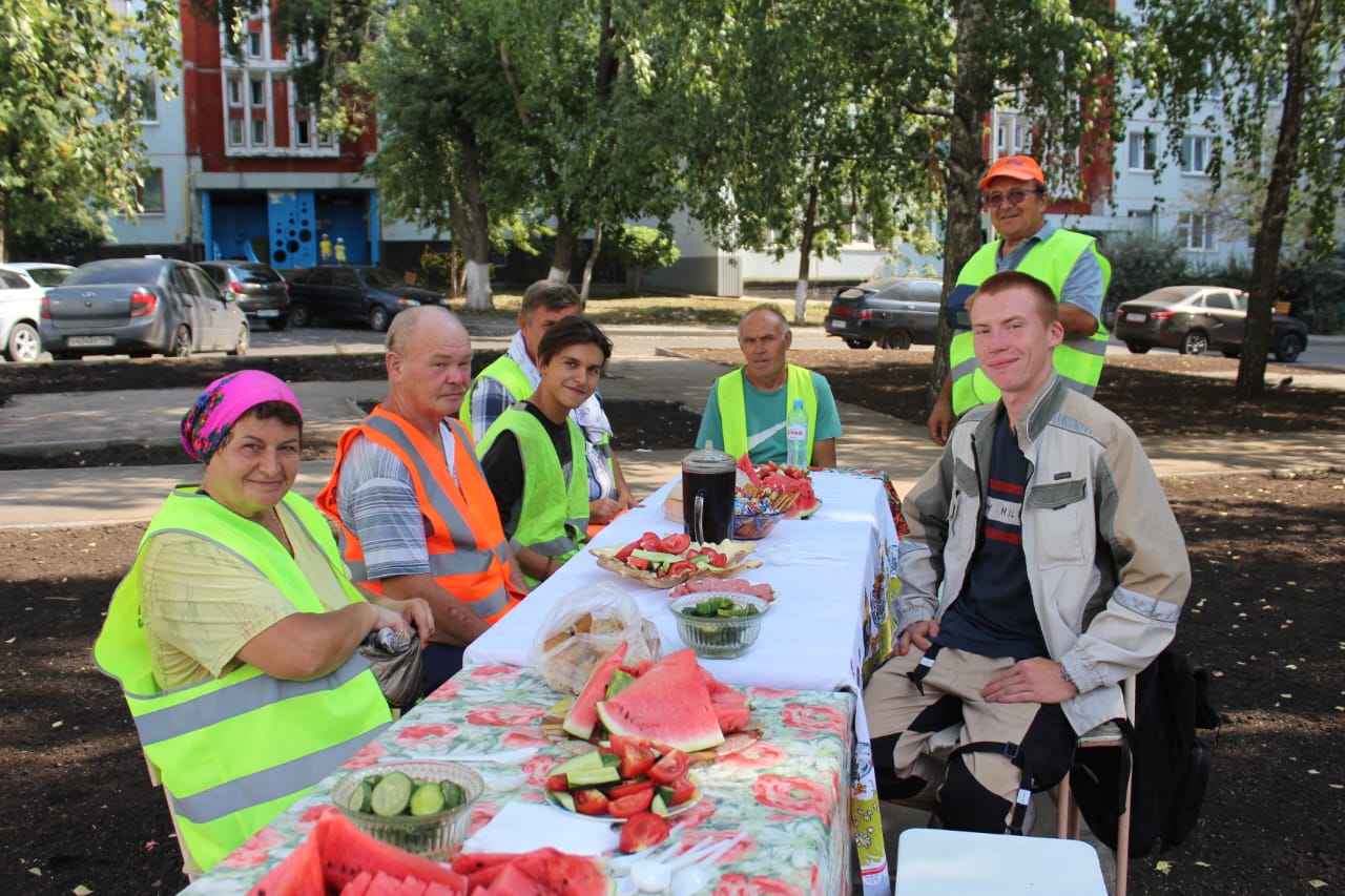 Жители микрорайона присоединились к празднику и накрыли стол  во дворе дома 32/02 для строителей.