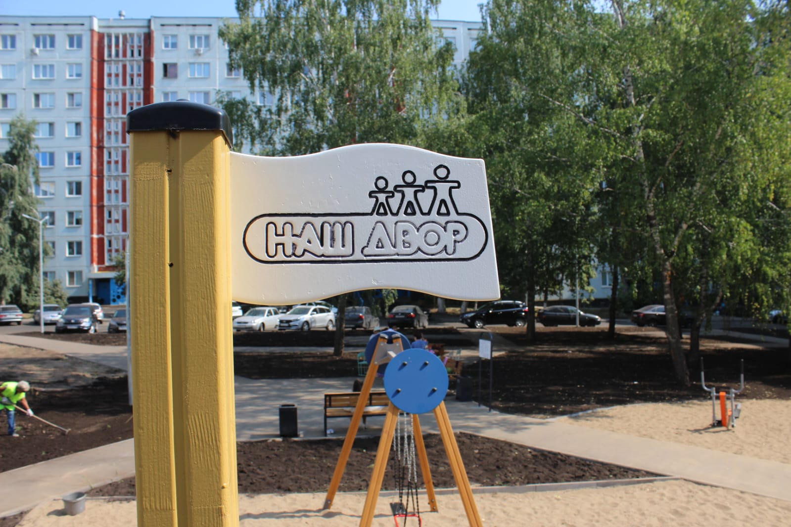 В рамках программы "Наш двор" на территории 32 комплекса обновлены дороги, установлены скамейки и урны, заменены опоры освещения, устанавливаются детские игровые и спортивные элементы.