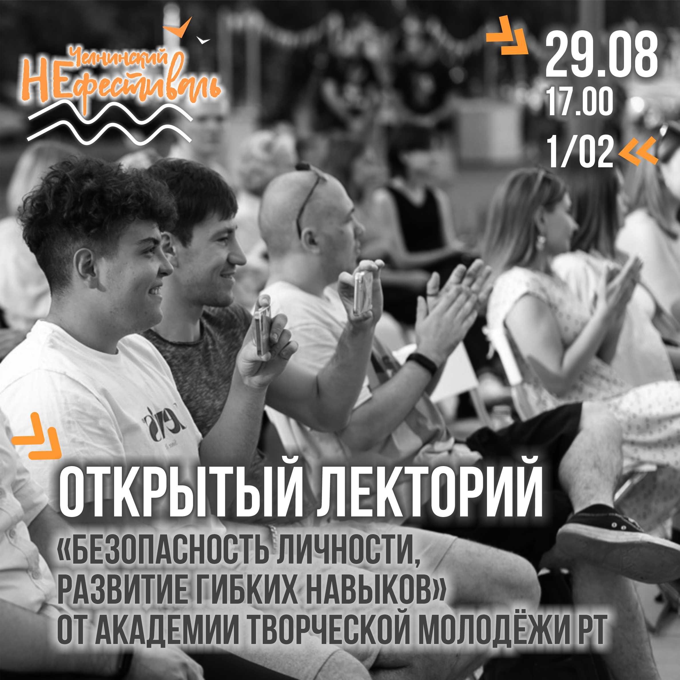 В образовательном блоке пройдет лекторий с практической частью с участием молодёжного помощника руководителя аппарата Антитеррористической комиссии в Республике Татарстан Никиты Переверзева. Тема встречи: «Безопасность личности». Также в лектории примут участие спикеры из нашего города: начальник управления по делам молодежи Лейсан Виденеева, начальник управления информационной политики и связям с общественностью Римма Мухаметзянова, видеограф Ильнур Абдуллин. Кроме лекций, участников мероприятия ждёт воркшоп по реализации молодёжной политики в городе Набережные Челны.