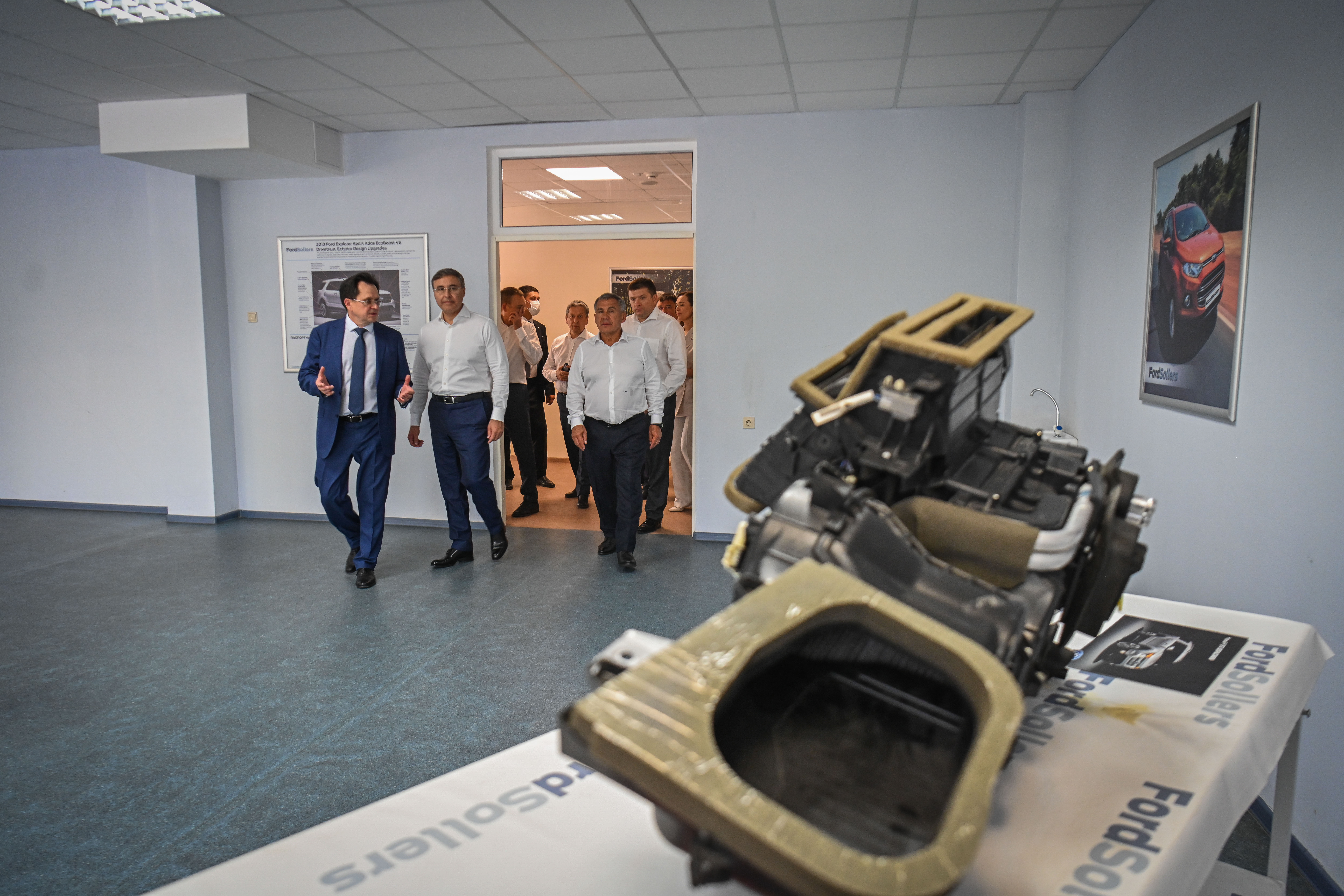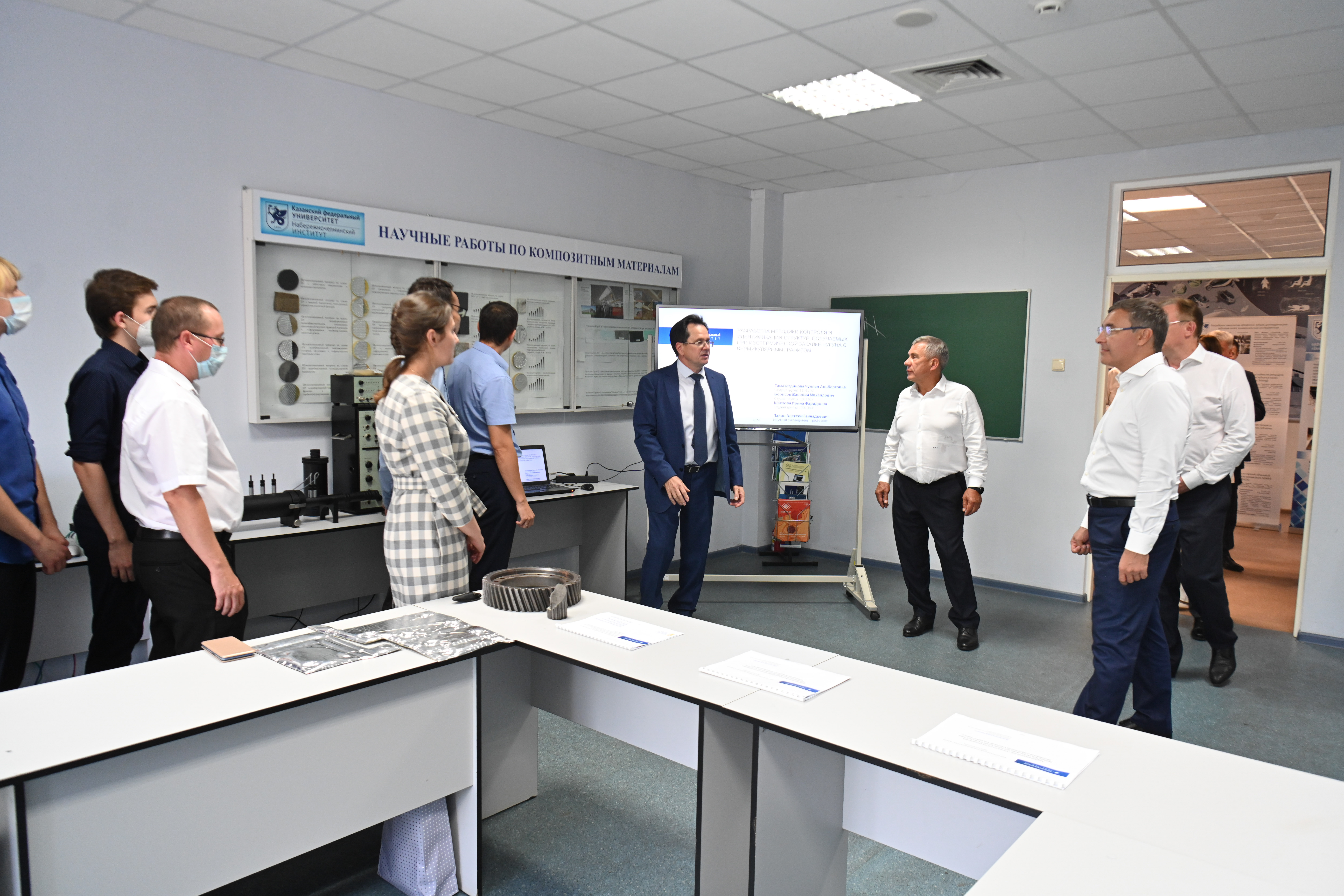 Президент Татарстана Рустам Минниханов и министр науки и высшего образования РФ Валерий Фальков посетили сегодня Набережночелнинский институт Казанского (Приволжского) федерального университета. В сопровождении мэра города Наиля Магдеева они ознакомились с возможностями действующего Инжинирингового центра института, осмотрели научно-исследовательские лаборатории, организованные в том числе с индустриальными компаниями-партнерами: «КАМАЗ», «Форд Соллерс», «Хайер».