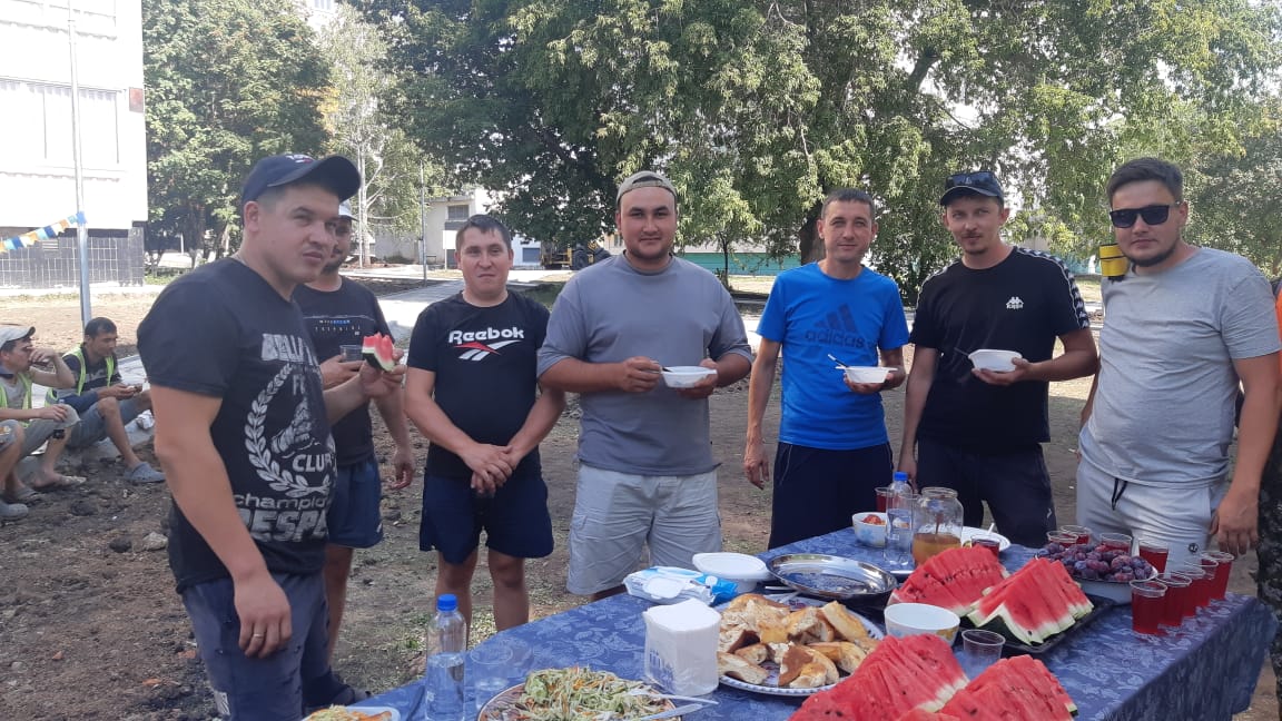 В 54 комплексе для работников подрядных организаций МУП «ПАД» и «Камавтодор», осуществляющих работы в рамках республиканской программы «Наш двор» организовали обед. Строителей угостили пловом и чаем с домашней выпечкой.