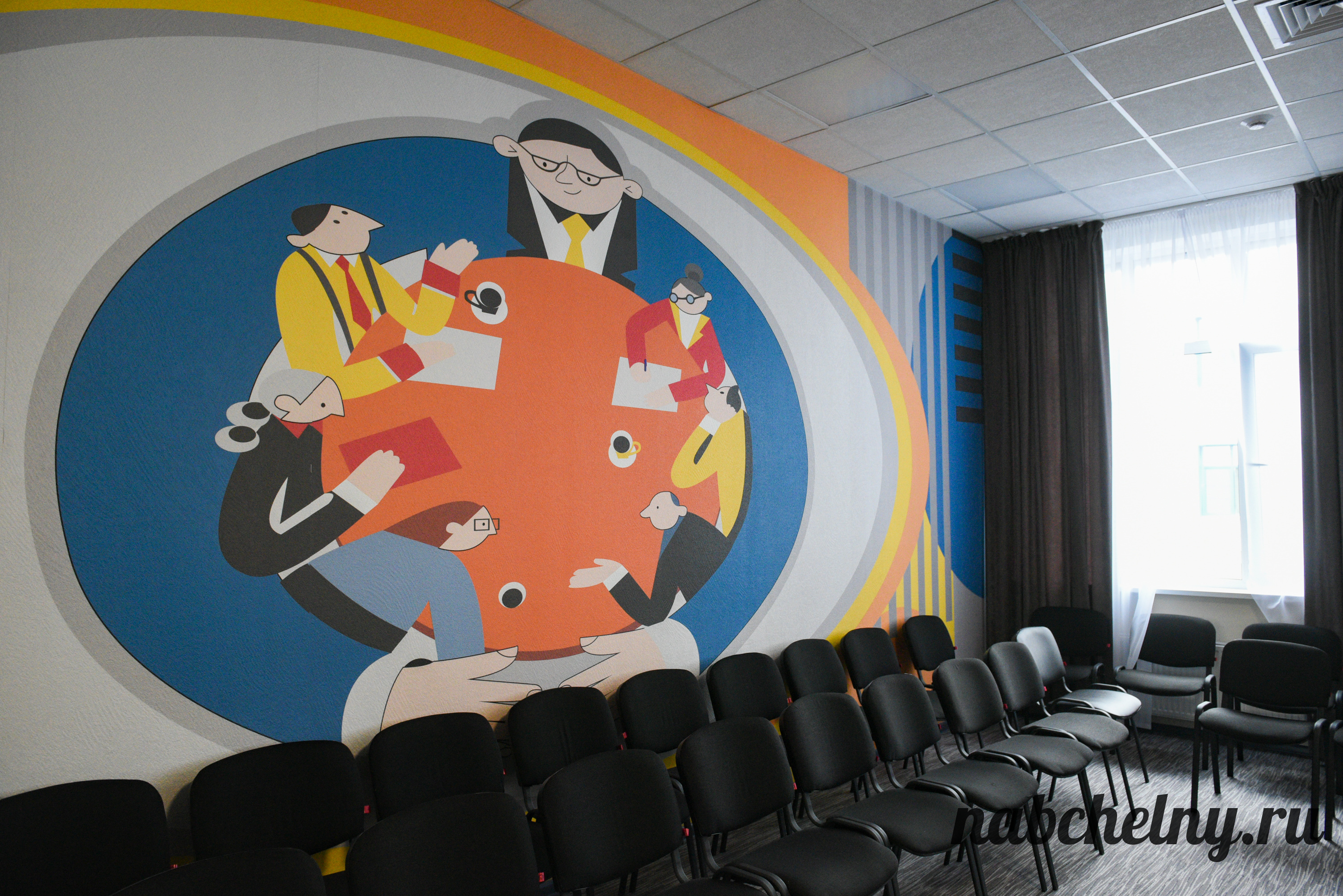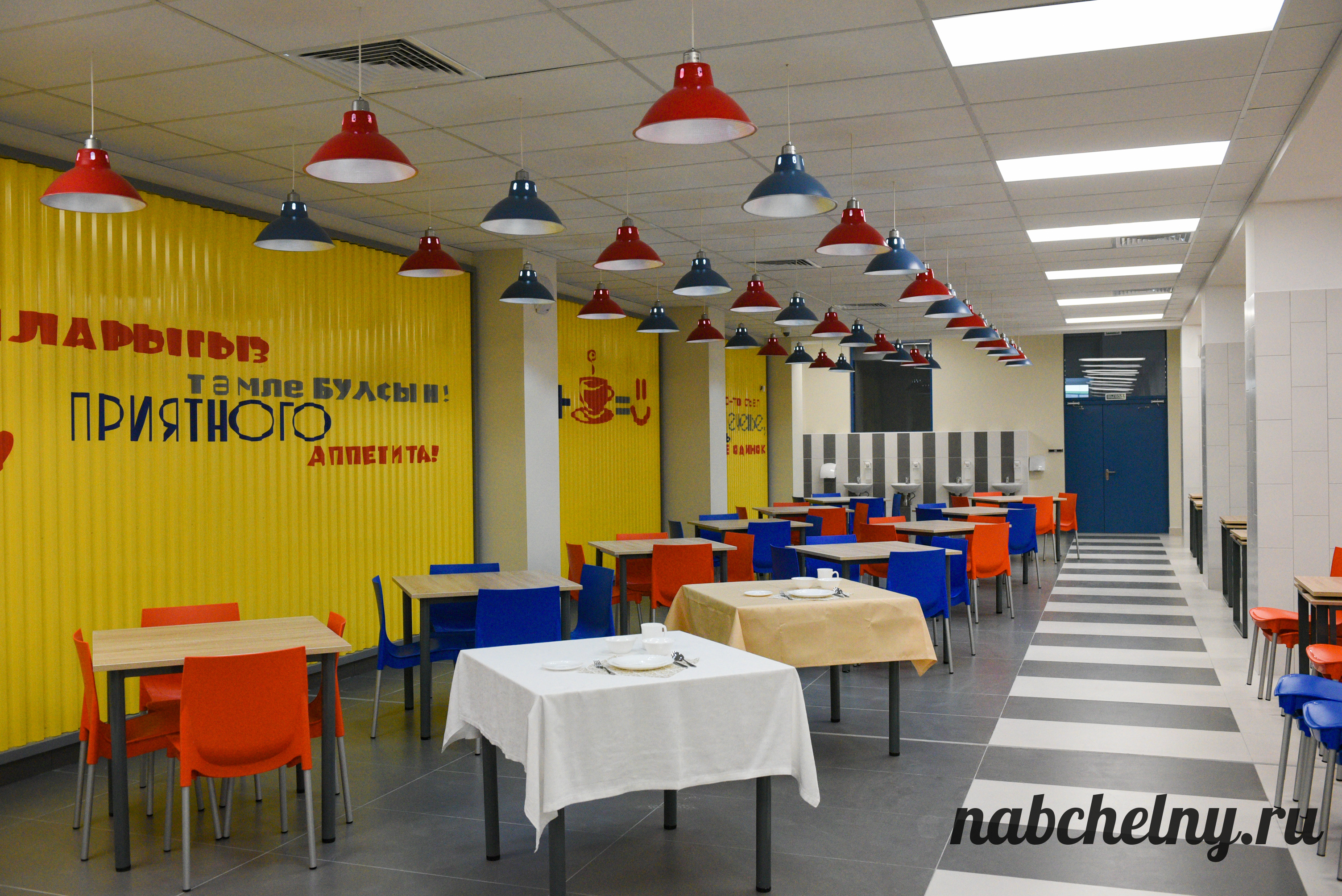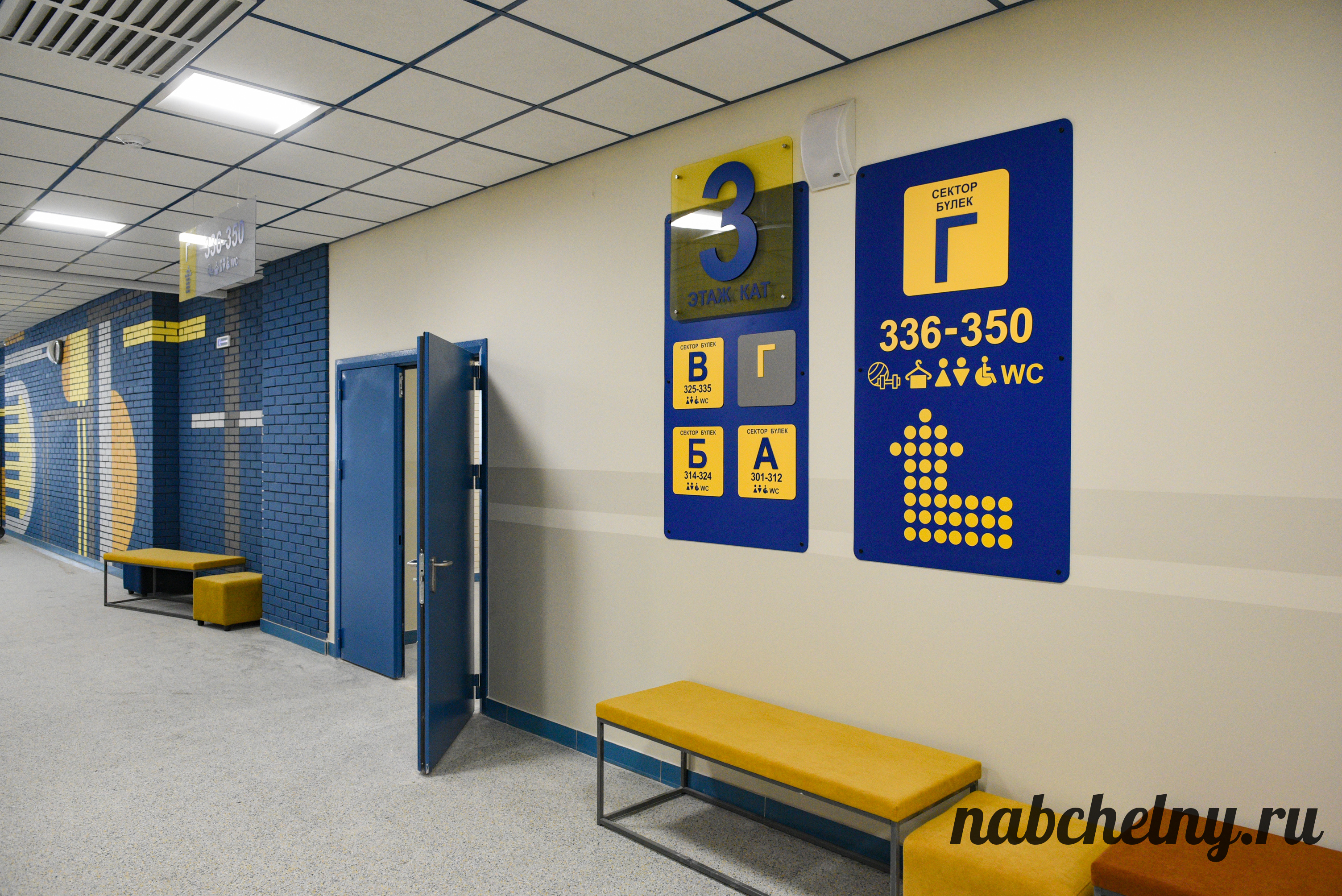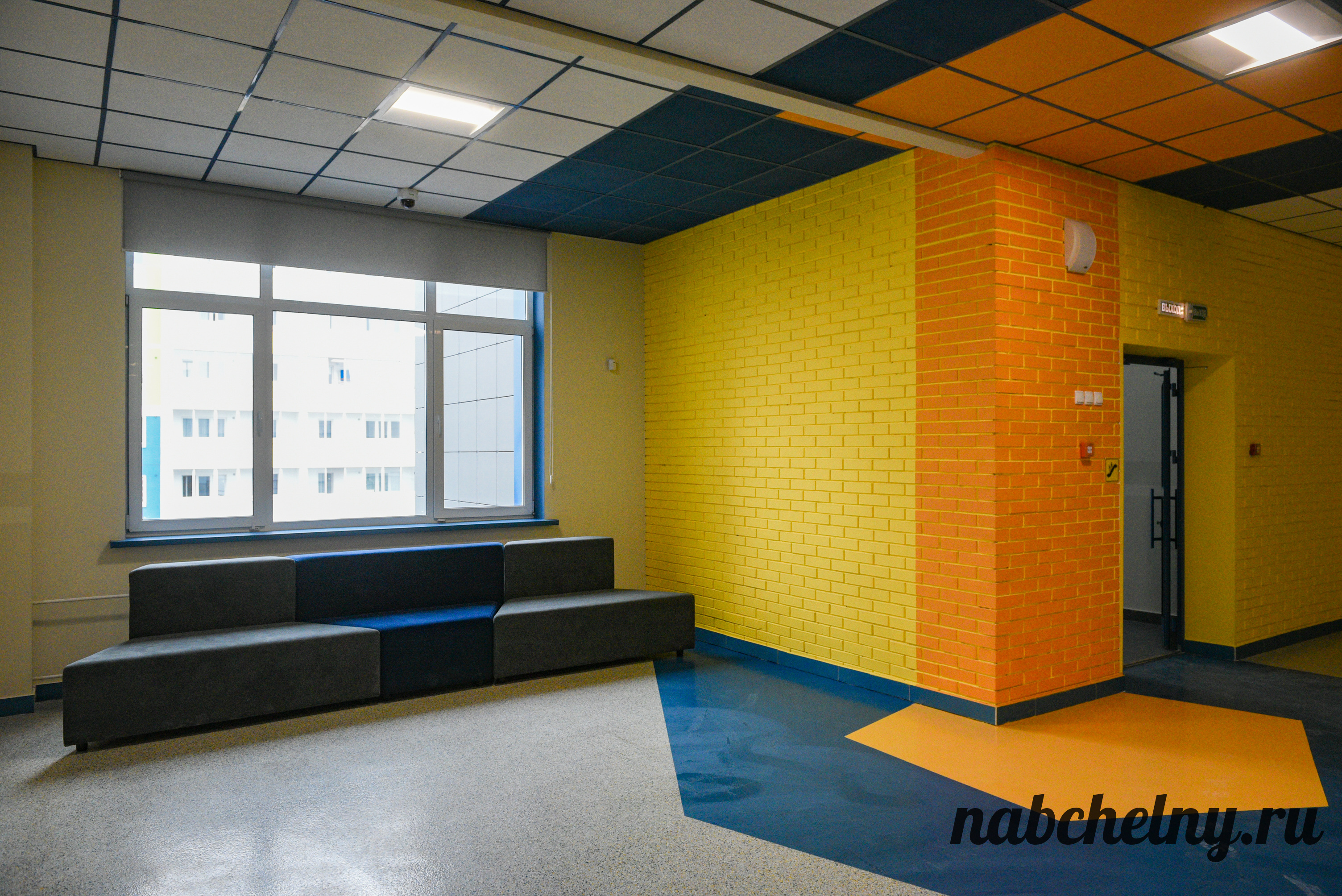 Стены заслуживают особого внимания. На всех этажах созданы зоны с ненавязчивым обучением школьников. К примеру, возле кабинетов русского языка на стены нанесены фотообои, которые посвящены правилами русского языка. Есть блоки об истории Республики Татарстан и города Набережные Челны, мотивационные надписи. Возле кабинета химии размещена таблица Менделеева.