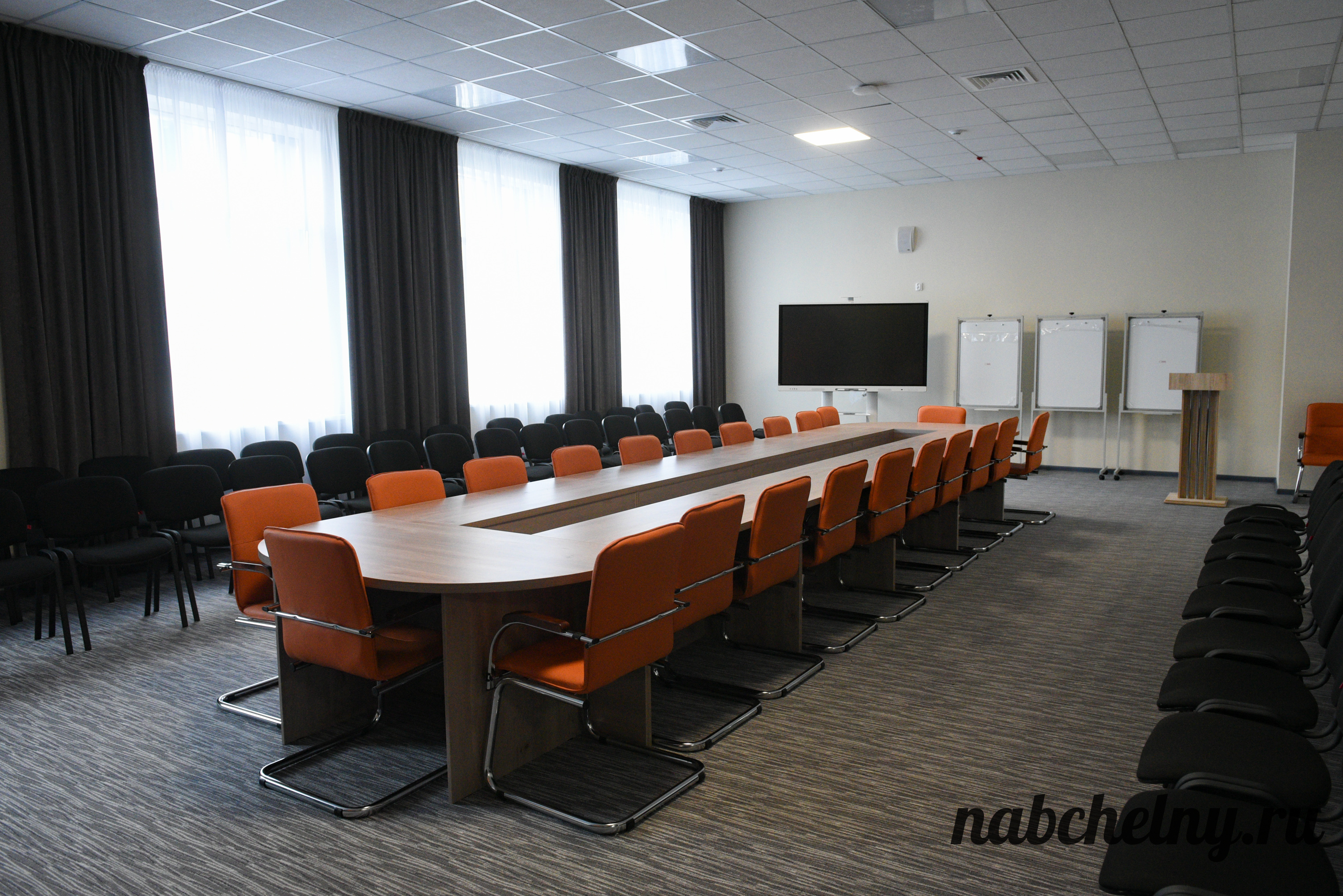 Так выглядит конференц зал, где могут проводить мероприятия и лекции как учителя, так и школьники.