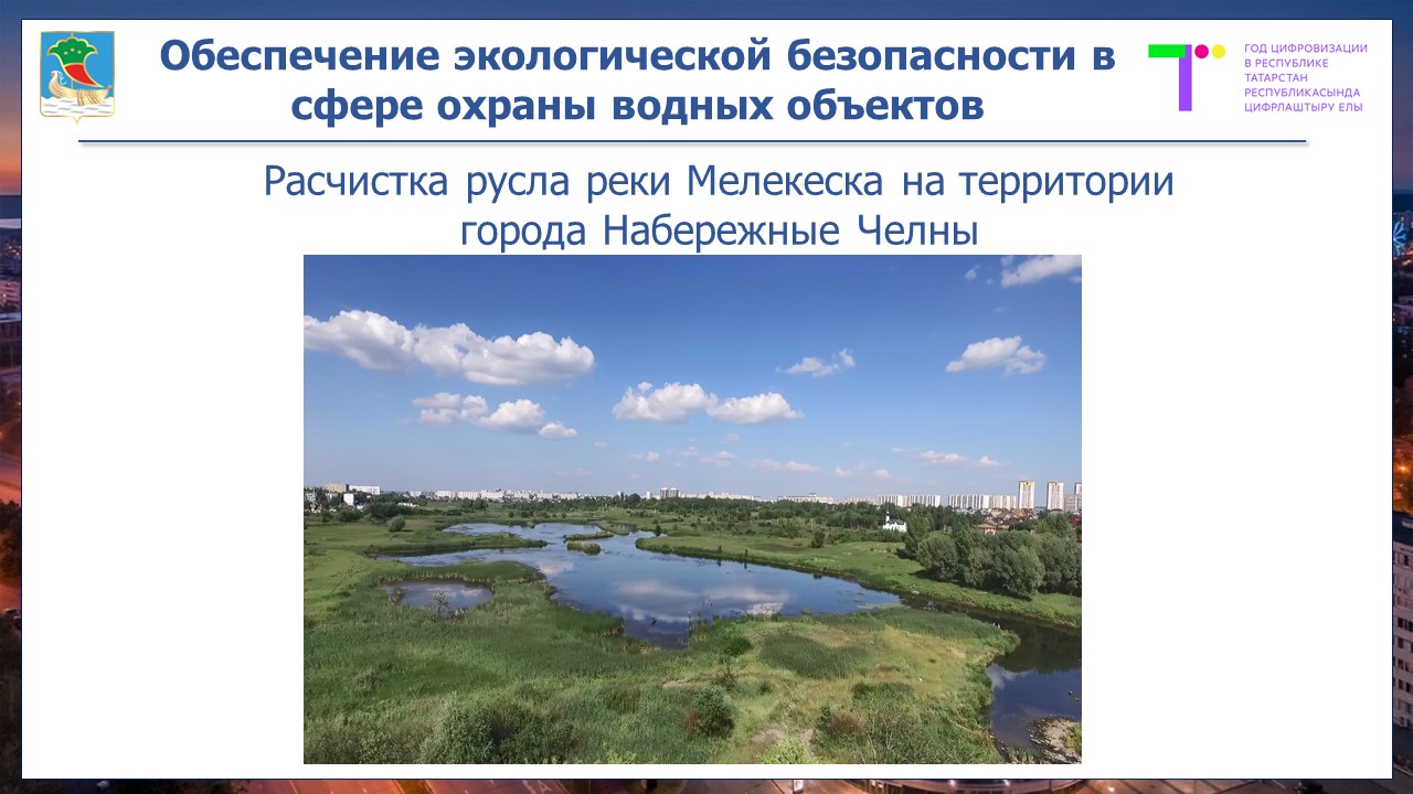 В рамках федерального проекта «Сохранение уникальных водных объектов» национального проекта «Экология» на территории города Набережные Челны реализуются мероприятия по очистке русла реки Мелекеска.