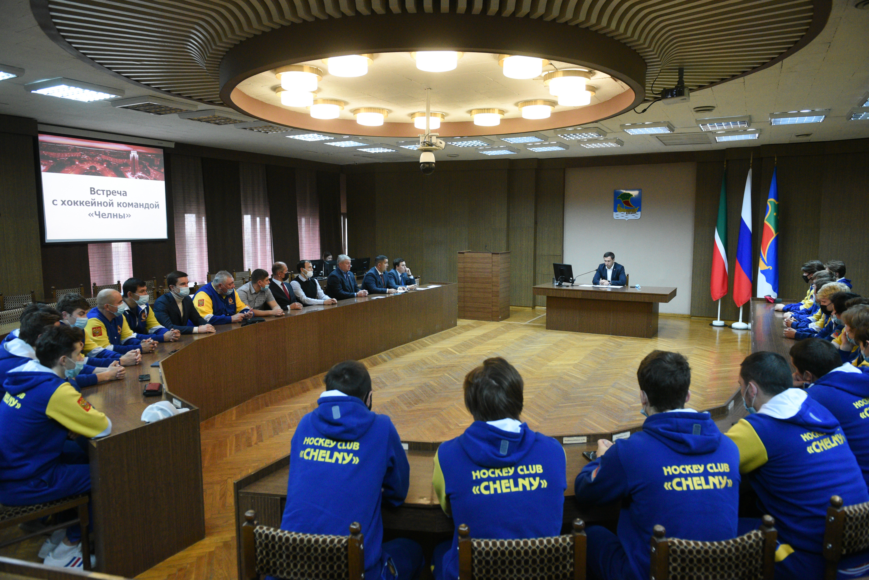 В Исполнительном комитете состоялась традиционная встреча с хоккейным клубом «Челны» перед стартом нового сезона. Руководитель Исполнительного комитета, президент хоккейного клуба «Челны» Фарид Салахов приветствовал новых спортсменов, вошедших в состав команды.