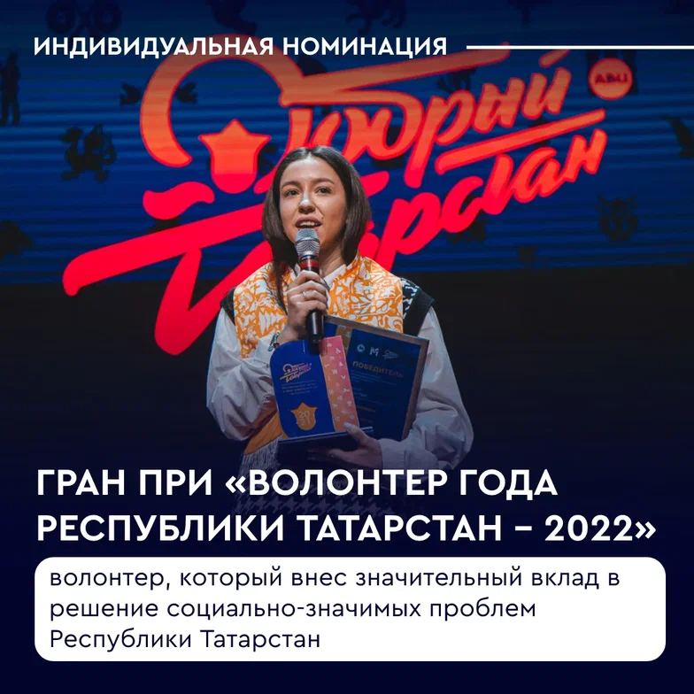 Контактное лицо: Инара Мингалиева, специалист сектора специальных проектов АНО «Информационно-ресурсный центр добровольчества Республики Татарстан», - менеджер Премии, тел.: +7 (953) 999-53-94,