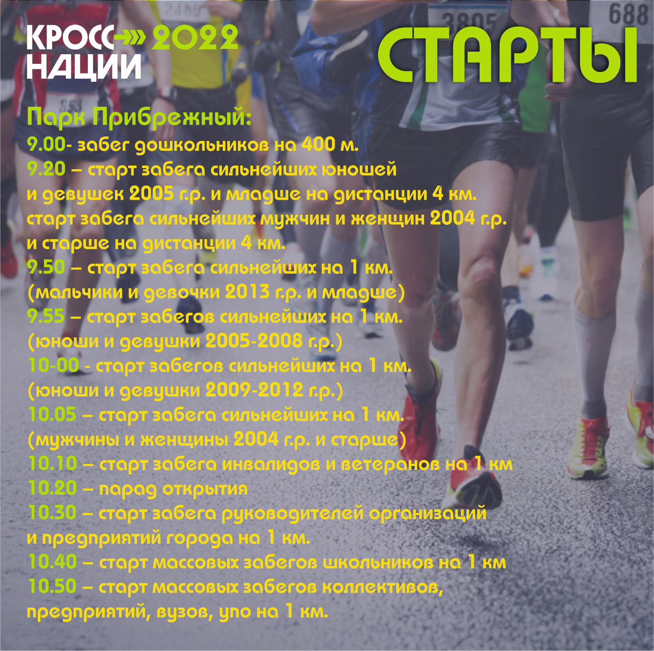 9:20 – старт забега сильнейших юношей и девушек 2005 г.р. и младше на дистанции 4 км., старт забега сильнейших мужчин и женщин 2004 г.р. и старше на дистанции 4 км.