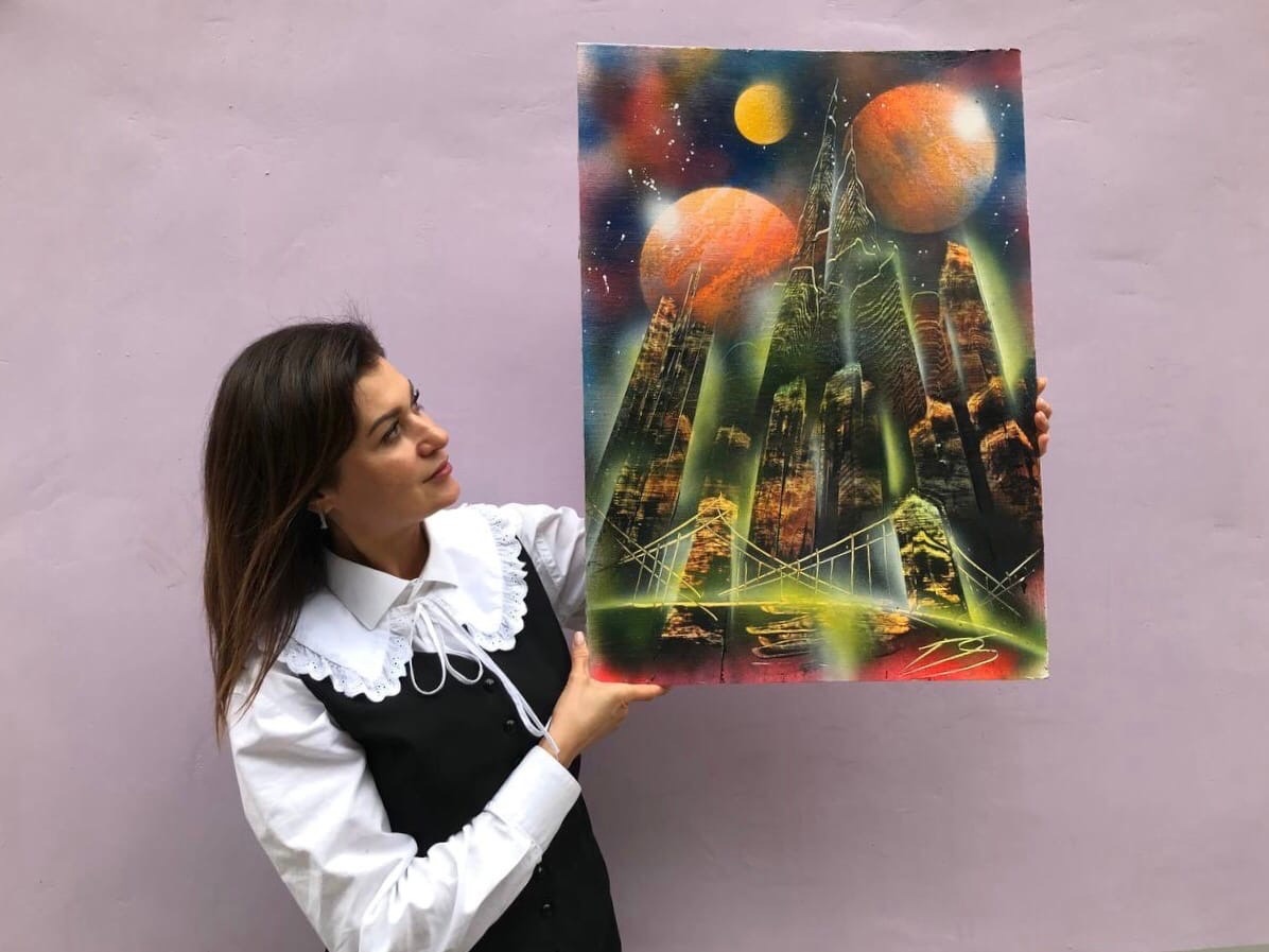 Обучающиеся Детской художественной школы №1 Ахметвалиев Вадим и Титова Дарья приняли активное участие в мастер-классе и впервые создали картины в жанре «SPRAY ART».