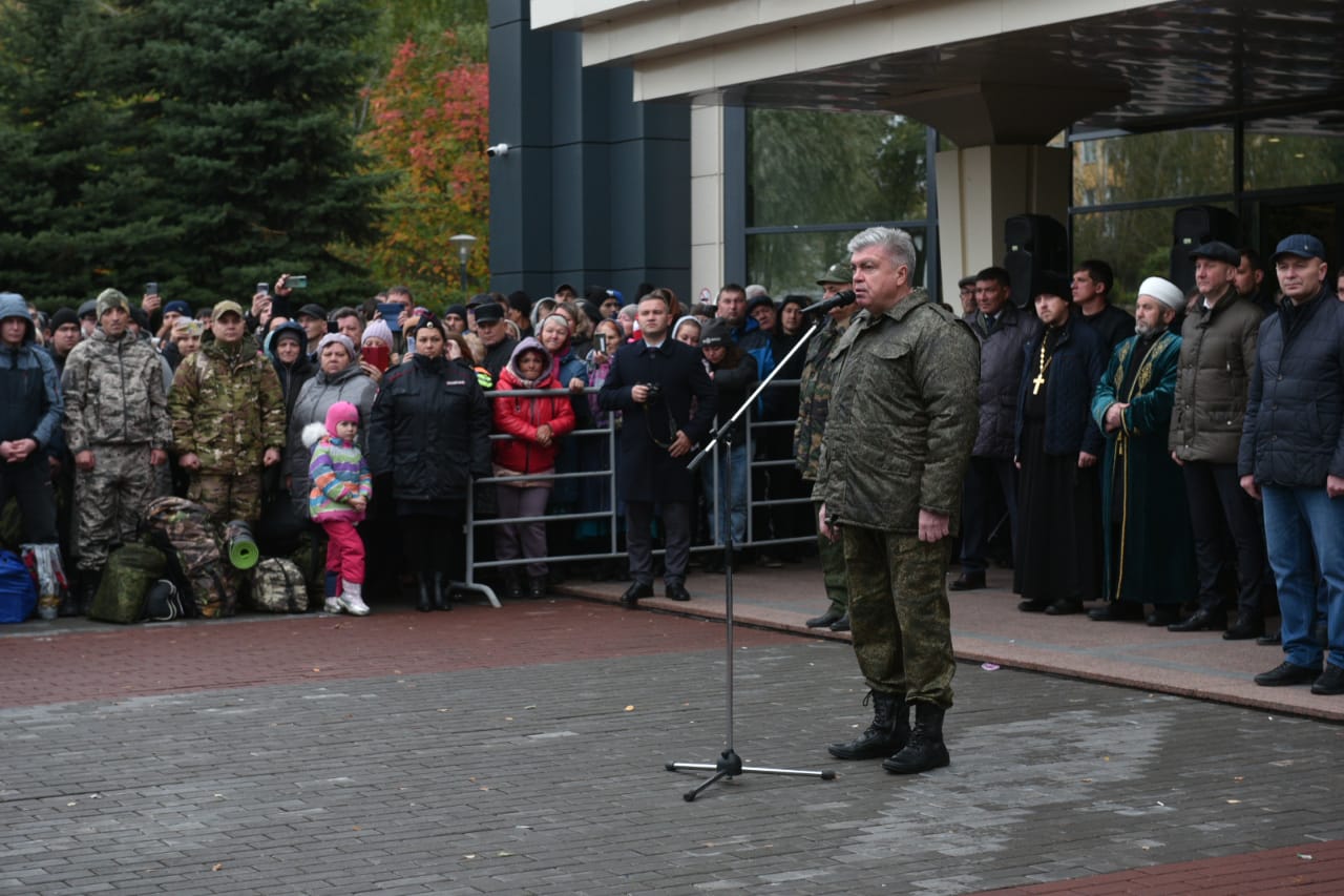 "Сегодня лучшие сыновья нашего города, республики по зову страны идут на защиту наших общих ценностей. С тревогой в сердце, беспокойством, мы провожаем наших воинов. Служите честно Отчизне. Мы здесь поддержим ваши семьи. Ваши дети, которые ходят в школу, будут полностью питаться бесплатно, а те, кто посещает детские сады, завтрашнего дня полностью освобождаются от родительской платы. Все эти меры социальной поддержки город берет на себя. За семьи вы не переживайте. С предприятиями организаций договорились, что на время вашей службы будет оказываться финансовая, моральная, поддержка вашим семьям. Ваши рабочие места будут сохранены за вами. Как мэр, как офицер запаса, как человек обещаю, что мы сделаем все, чтобы морально, материально, организационно поддержать ваши семьи. Служите честно. Мы вами гордимся и всегда будем ждать. В добрый путь. Вперед", - сказал он, обращаясь к военнослужащим.