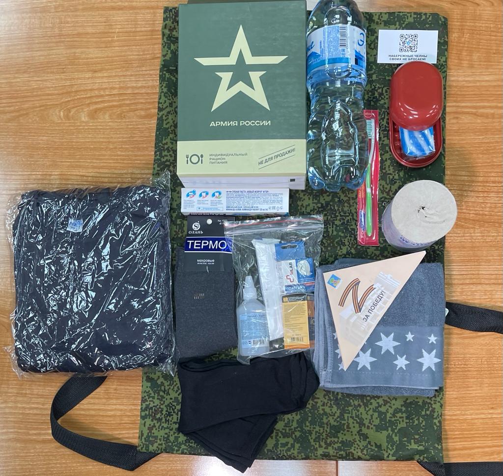Всем мобилизованным челнинцам выдают предметы первой необходимости. Для этого были сшиты специальные рюкзаки. Сегодня мобилизованные получили следующее: термобелье, полотенце, носки, предметы первой необходимости, сухой паек, медикаменты.