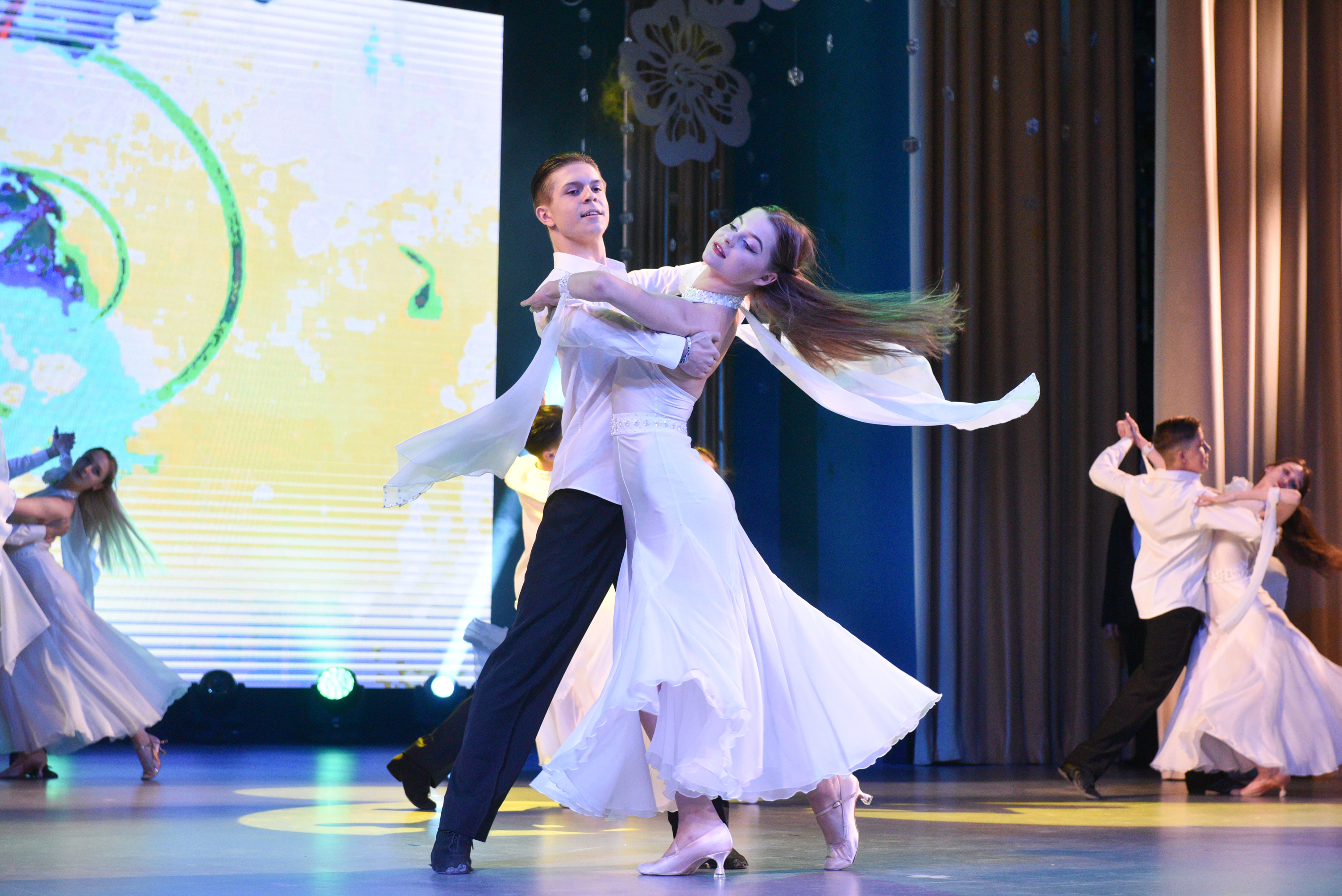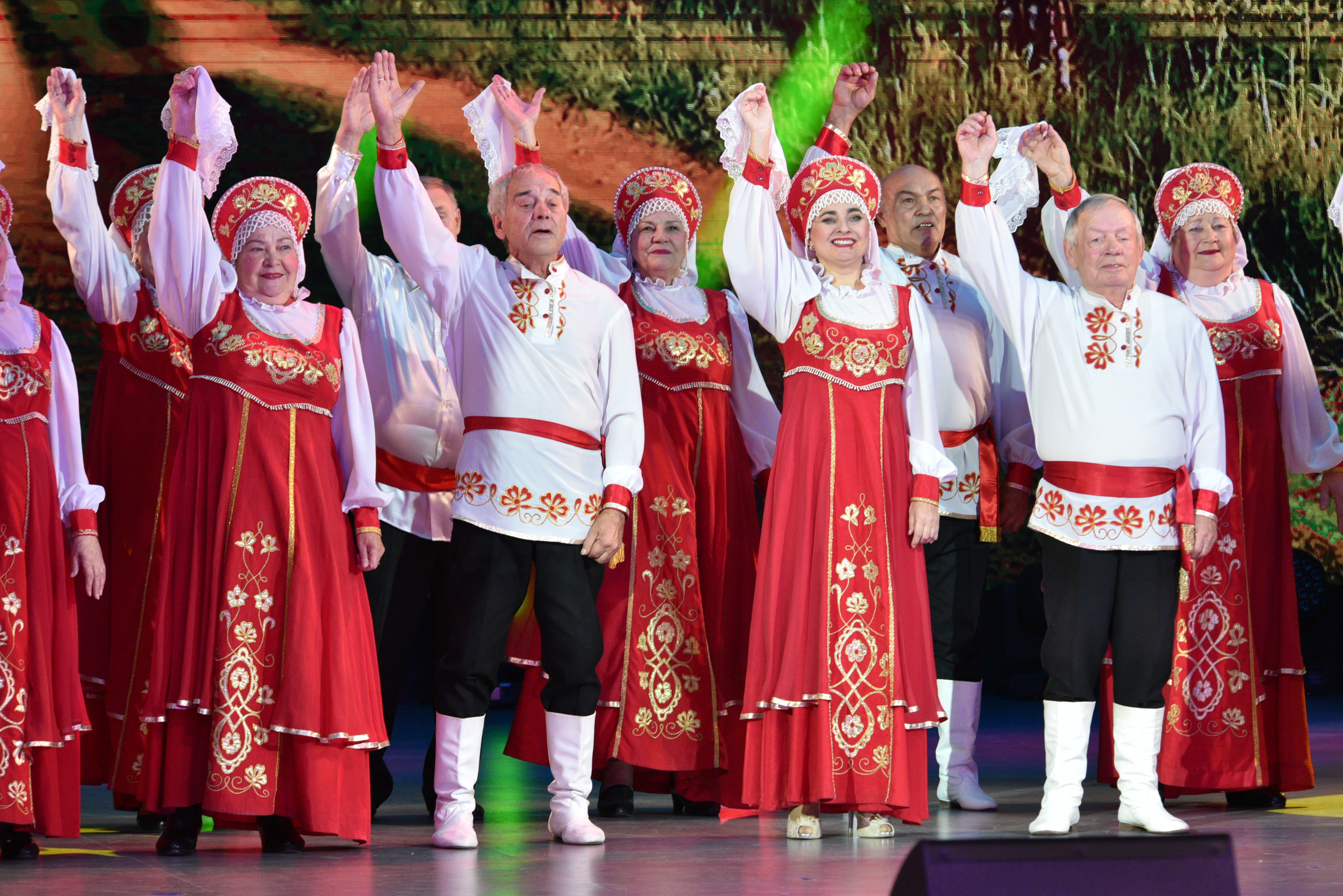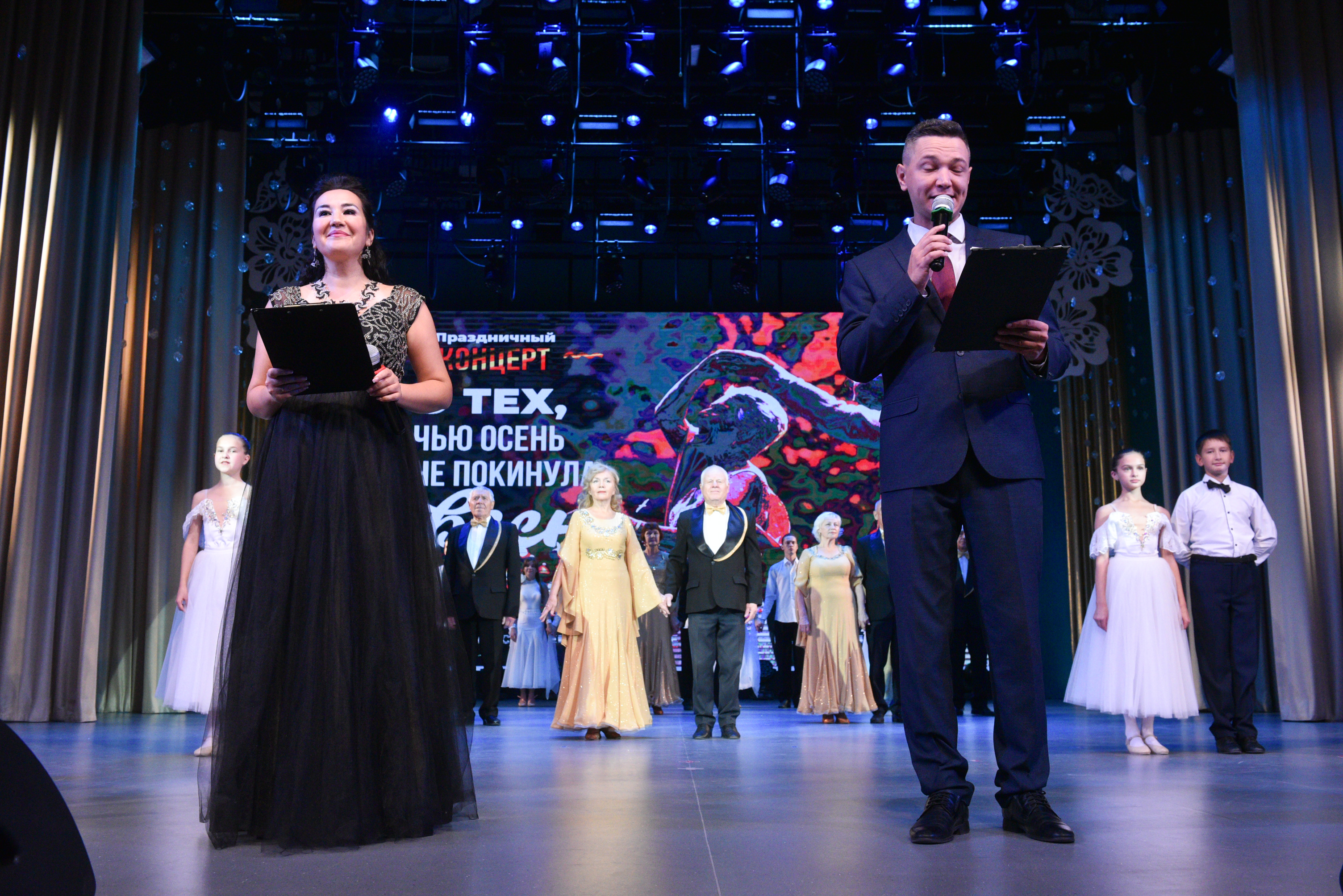 Праздничный вечер украсили творческими номерами «Народный хор ветеранов им. А. Краснова», студия танца "Ритм", популярные певцы и артисты Дворца культуры.