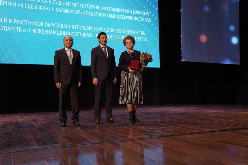 В рамках программы проведения Съезда прошла церемония награждения нагрудным знаком «Отличник образования Содружества Независимых Государств» учителей и работников образования государств-участников СНГ. Почетного звания удостоена ректор НГПУ Альфинур Галиакберова.