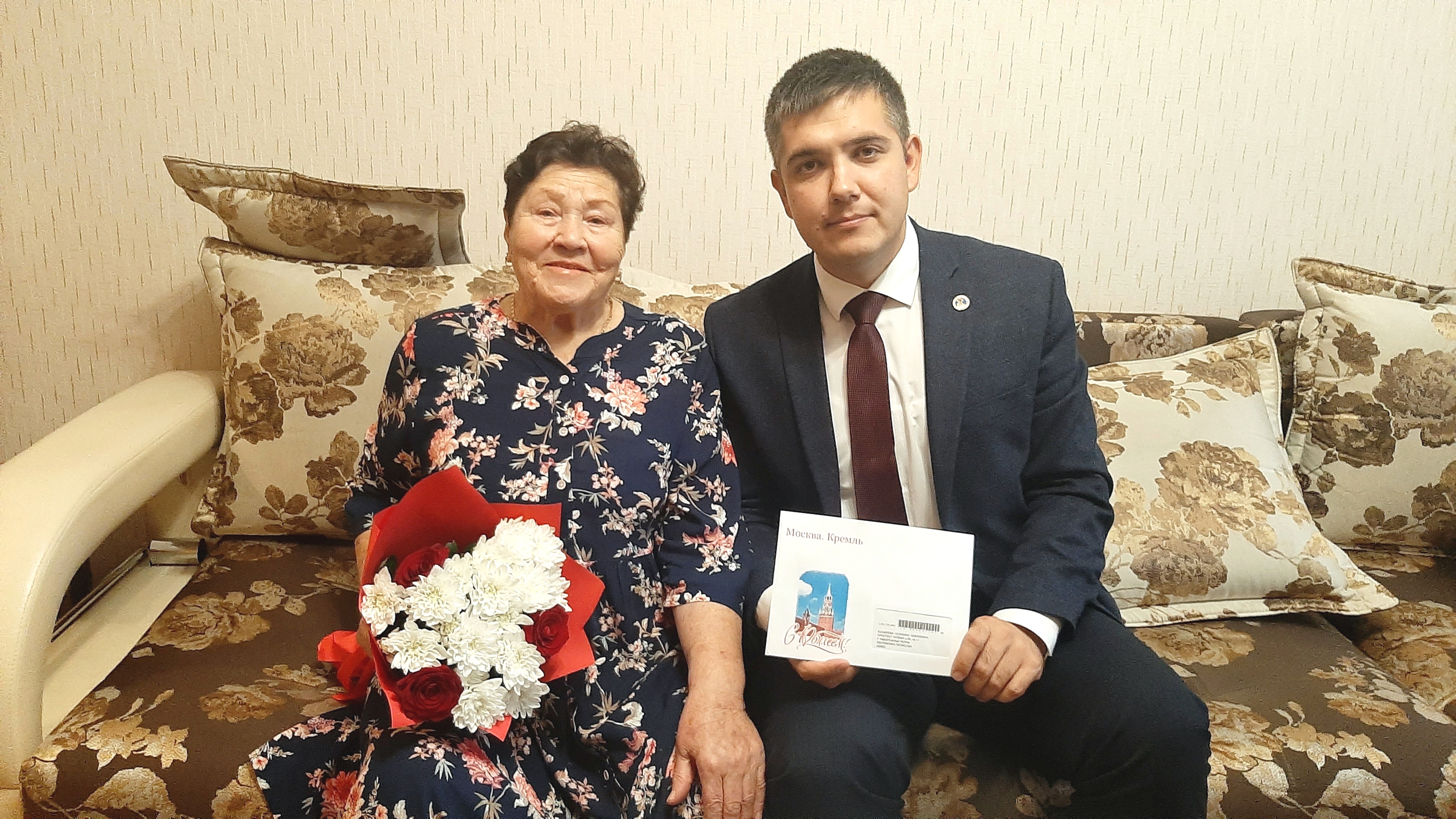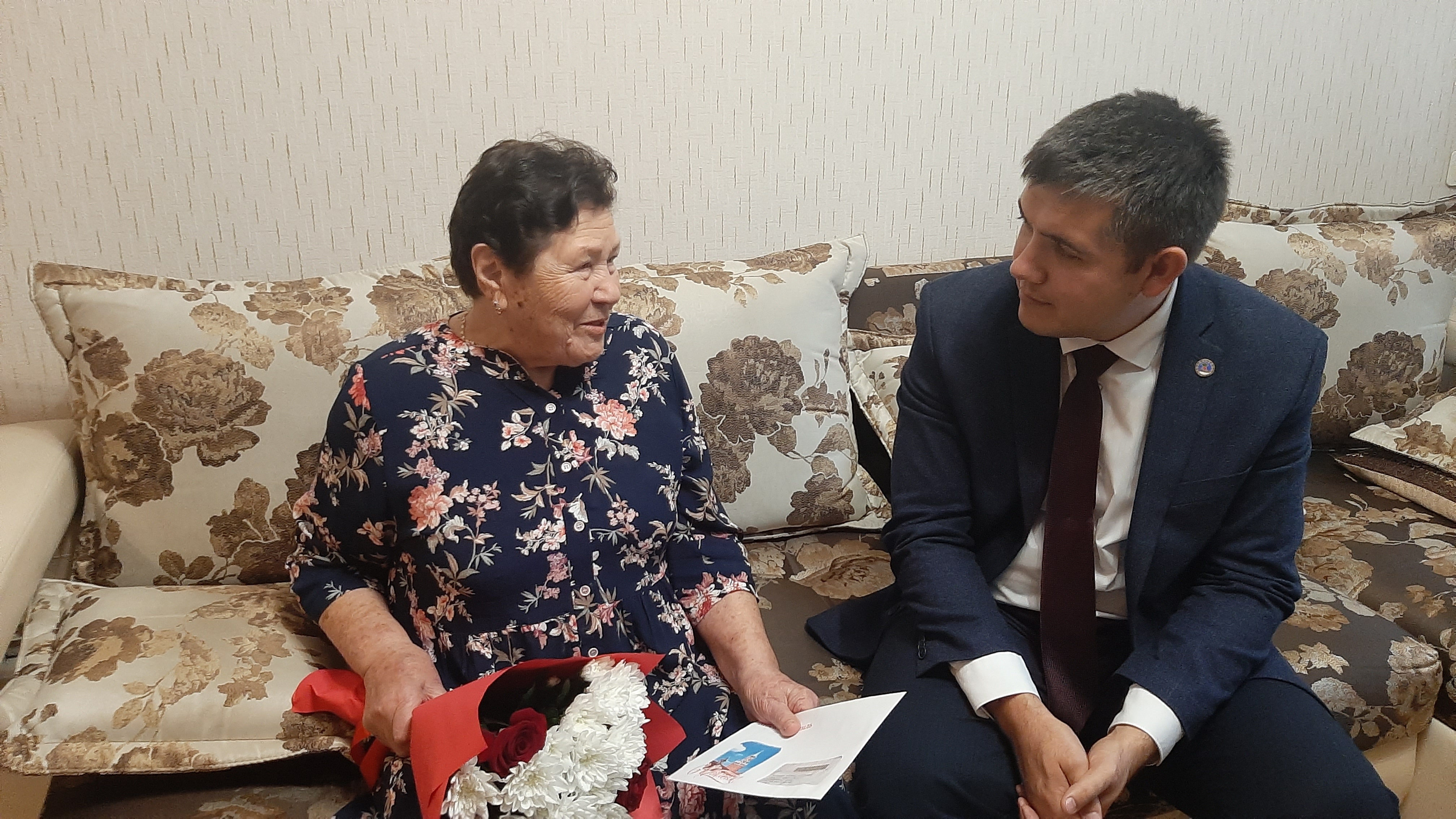 Поздравления и подарки от имени президента Российской Федерации Владимира Путина, мэра города Набережные Челны Наиля Магдеева и от себя лично юбиляру вручили и.о. главы администрации Комсомольского района Фидарис Хабибуллин и председатель ТОС «Балкыш» Татьяна Саунина.