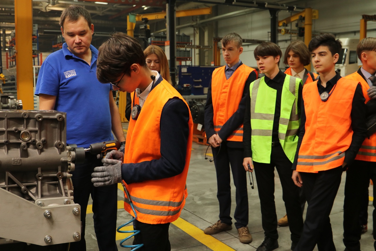 Сегодня в подразделениях ПАО КАМАЗ было многолюдно, обгоняя рабочих, к проходным завода шагали учащиеся 9-х классов школ №18, 19, 27, 43, 51, 56.