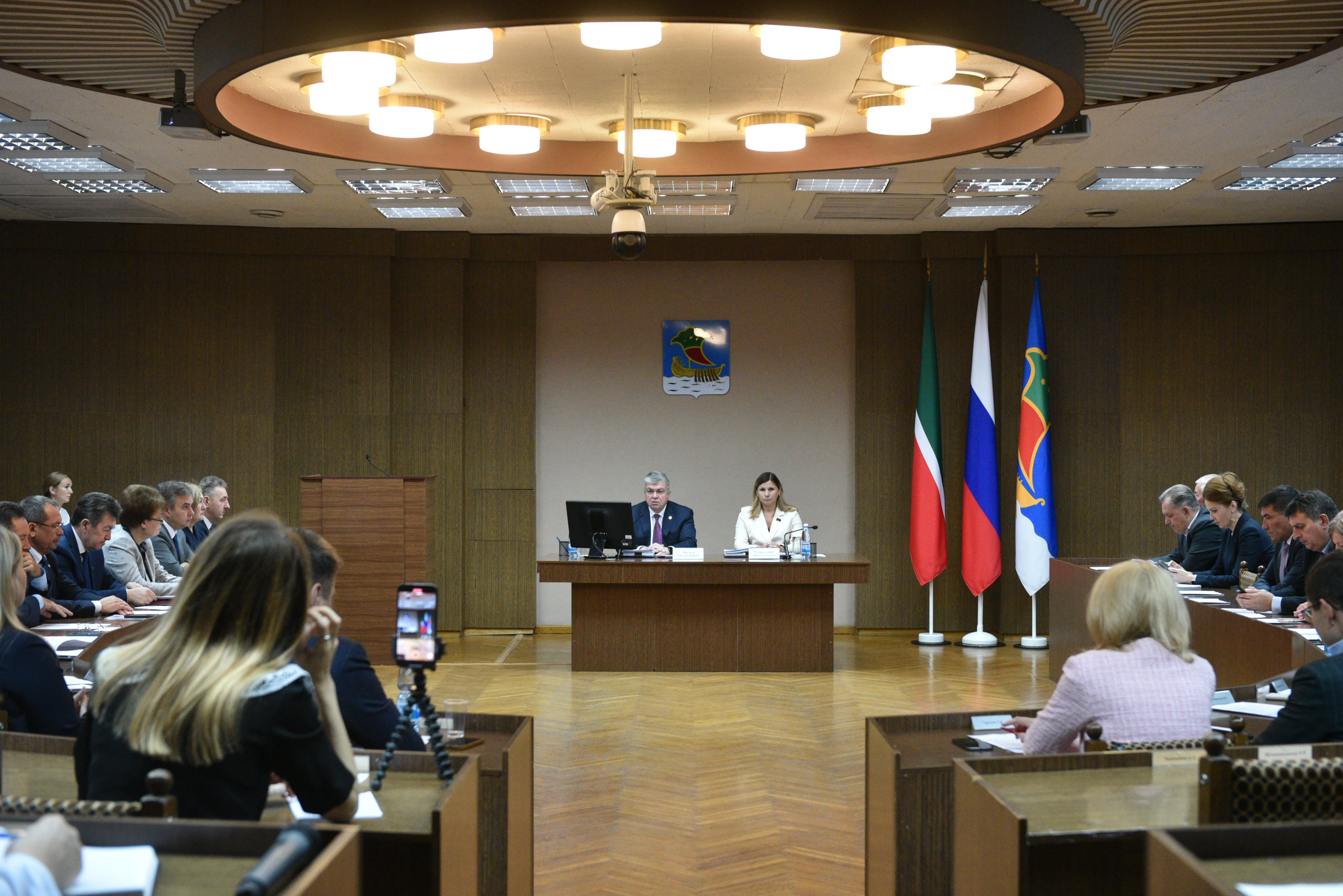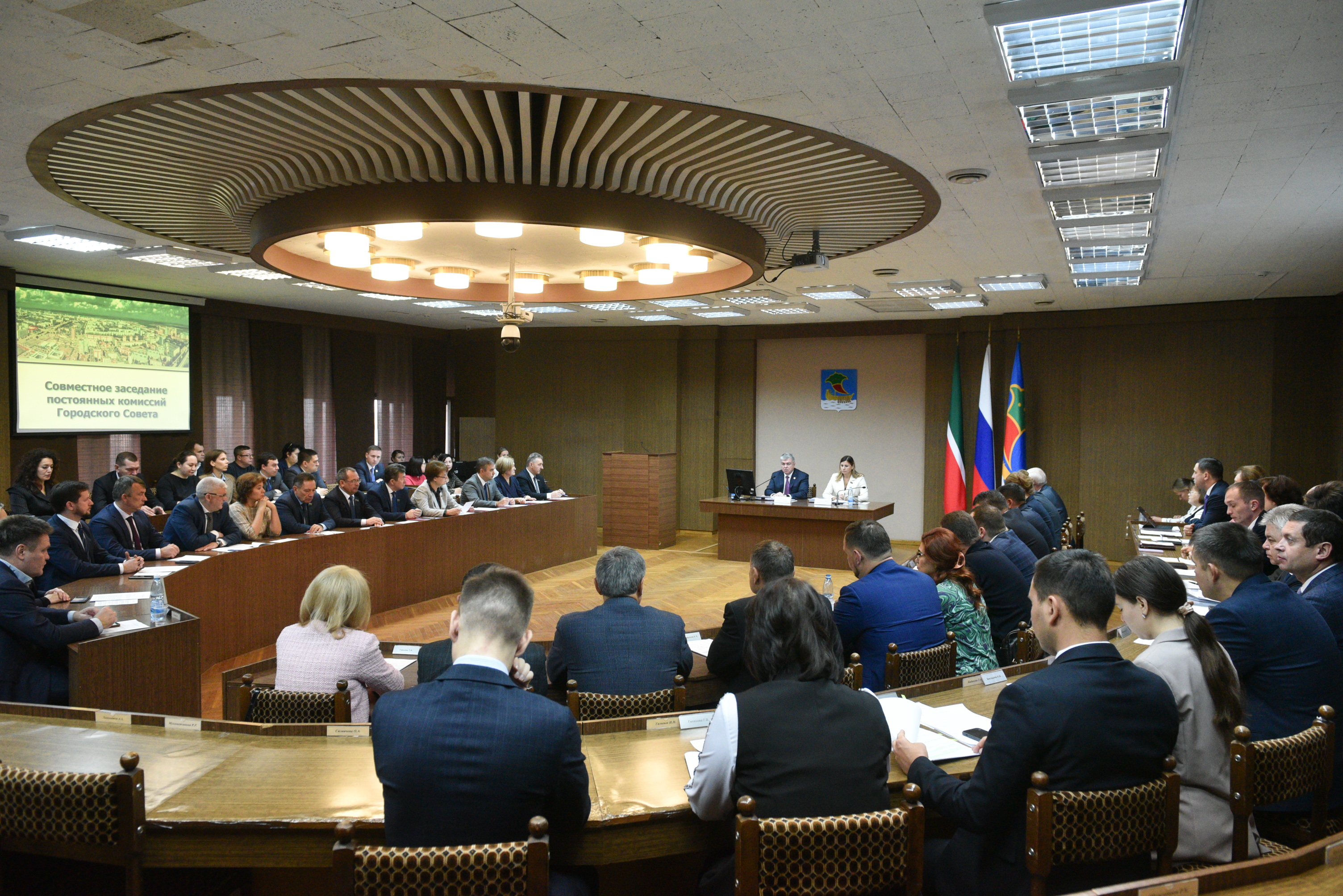 Сегодня депутатский корпус в ходе совместного заседания обсудил вопросы внесения изменений в решение горсовета «О бюджете муниципального образования на 2022 год и плановый период 2023 и 2024 годов», о местных нормативах градостроительного проектирования, о внесении изменений в положение о порядке приватизации муниципального имущества и другие. Руководил заседанием мэр города Наиль Магдеев.