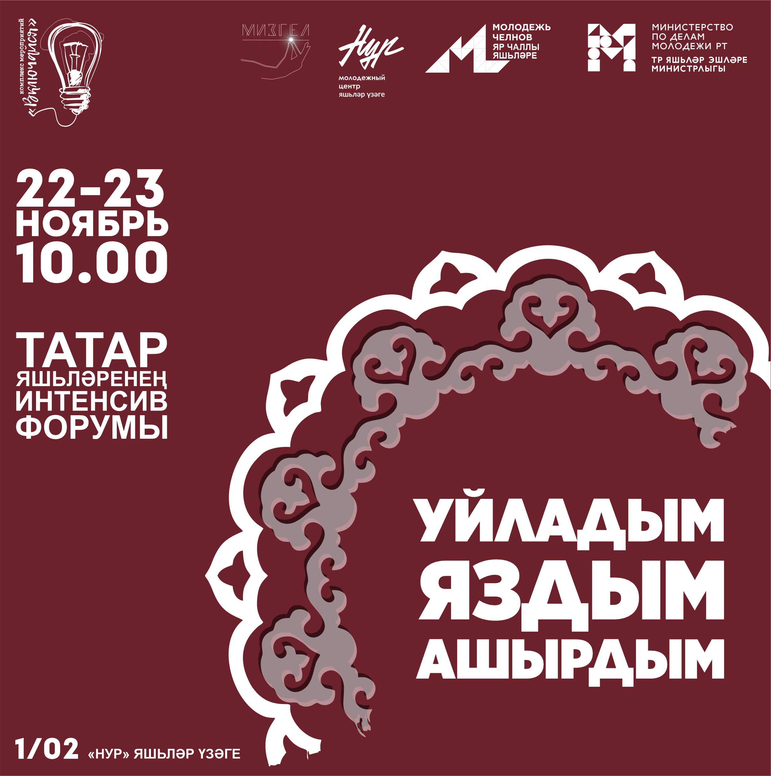 Форум-интенсив татарской молодежи-2022 проводится в рамках комплекса мероприятий по созданию и развитию студенческих и молодежных сообществ «Включайся» при поддержке Министерства по делам молодежи РТ, в рамках грантового конкурса.