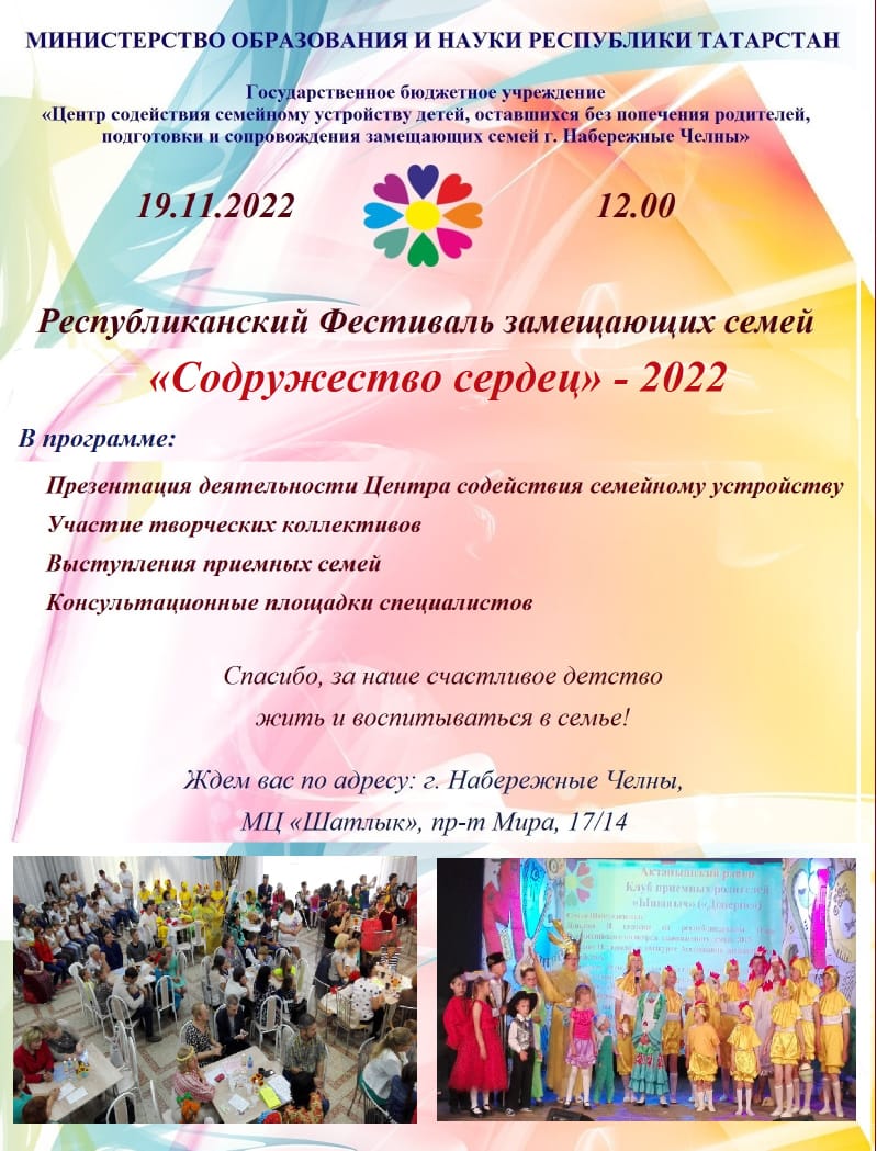 19 ноября в 12:00 в молодежном центре «Шатлык» пройдет Республиканский фестиваль замещающих семей «Содружество сердец».